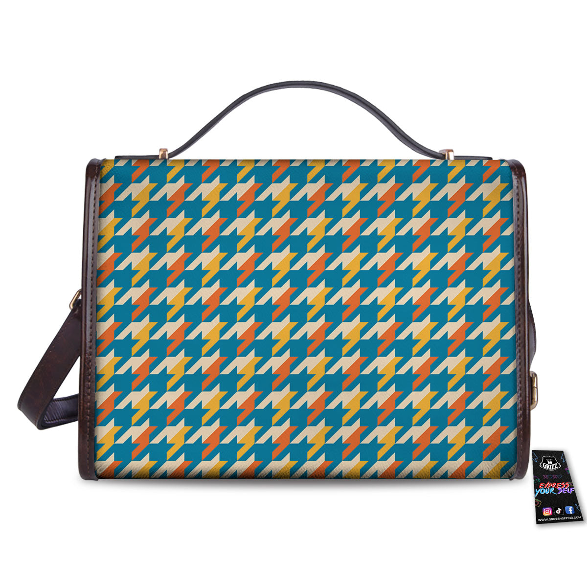 Houndstooth Blue And Orange Print Women’s Satchel Bag