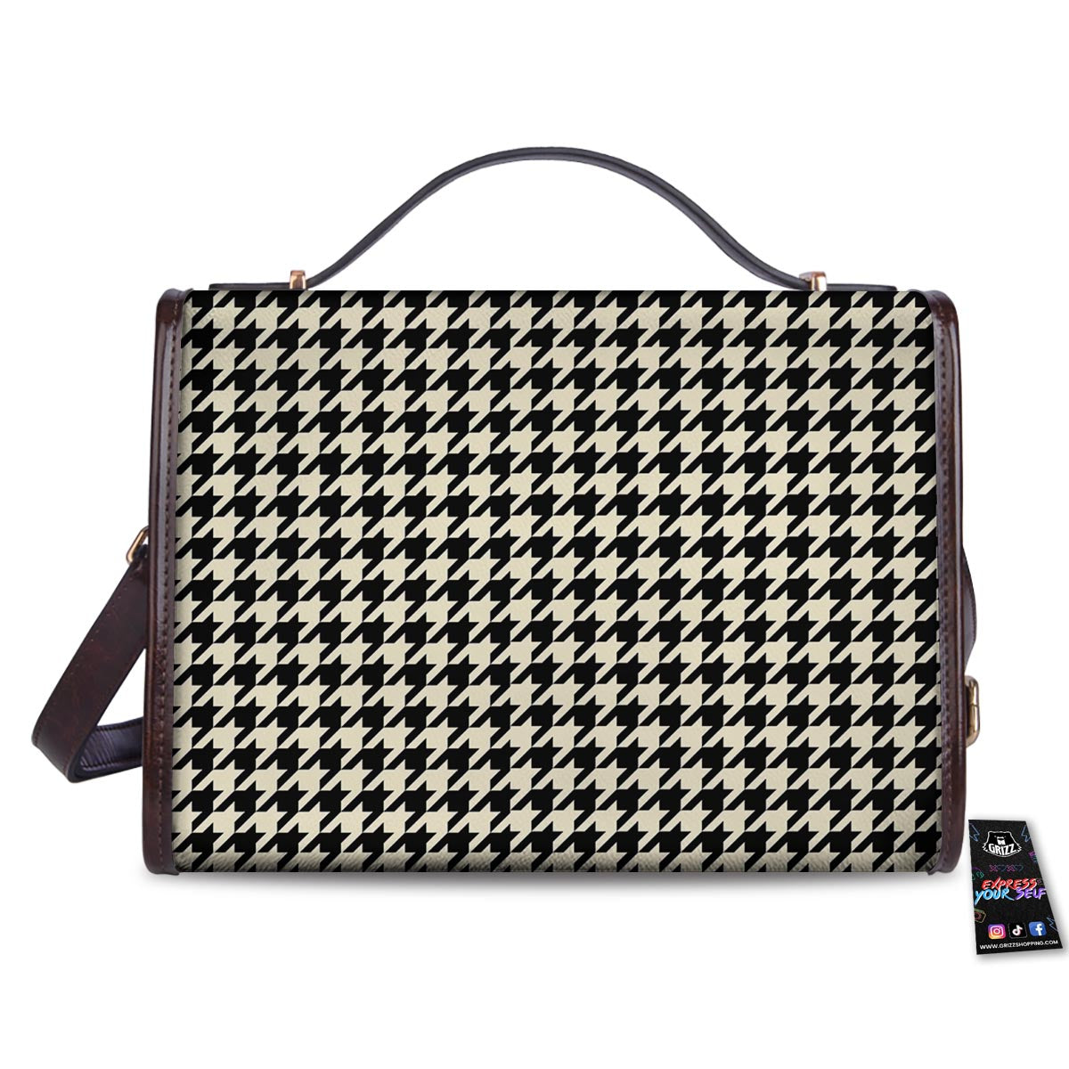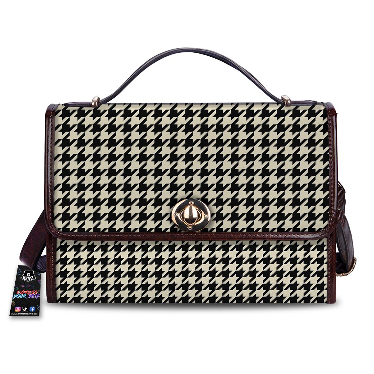 Houndstooth Black And Tan Print Pattern Women’s Satchel Bag