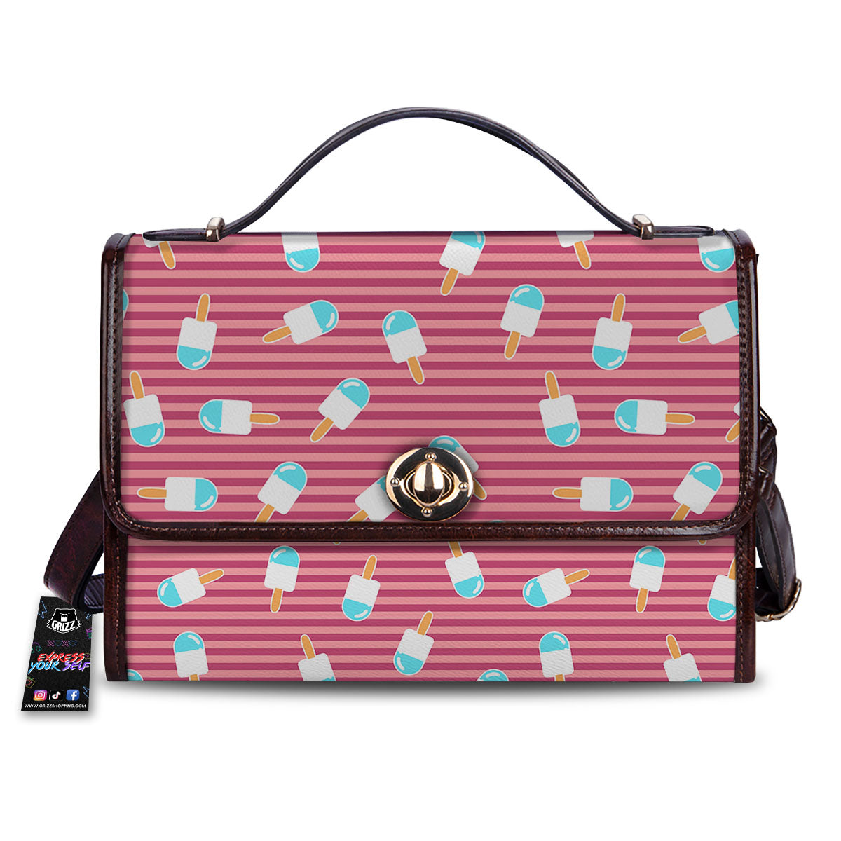 Ice Cream Pink Striped Print Pattern Women’s Satchel Bag