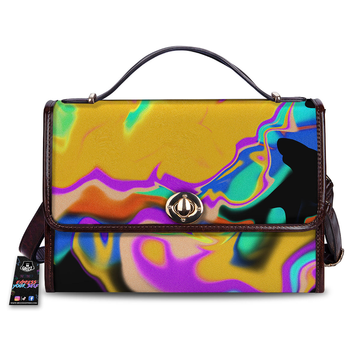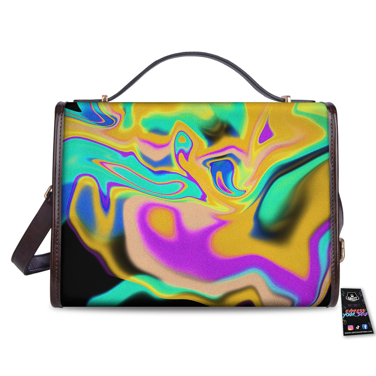 Liquid Trippy Holographic Neon Print Women’s Satchel Bag