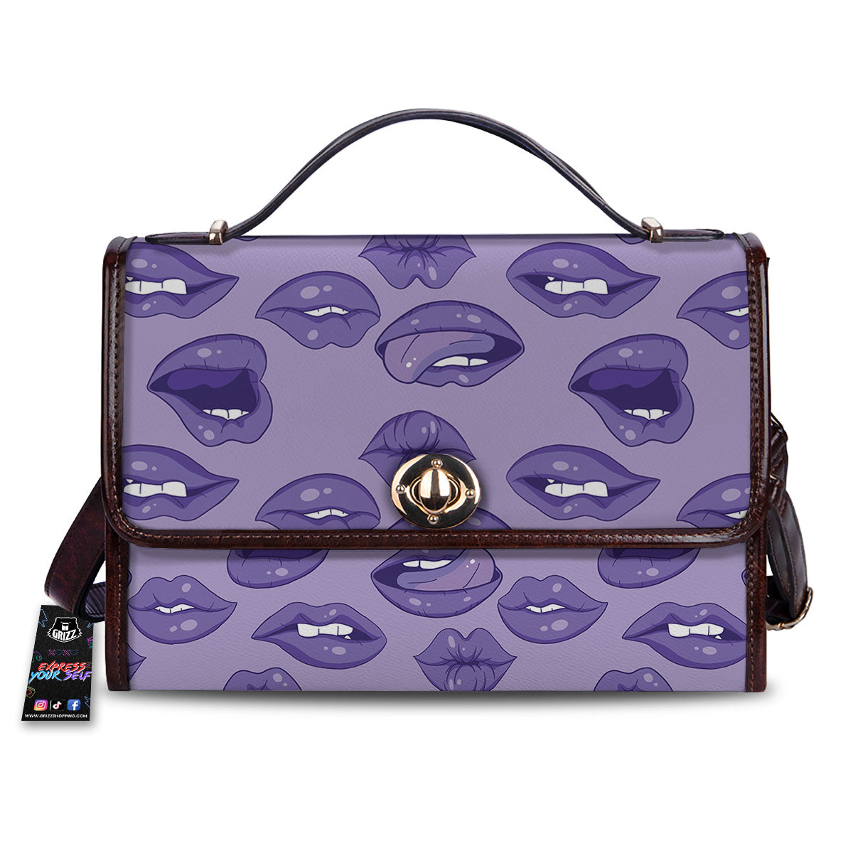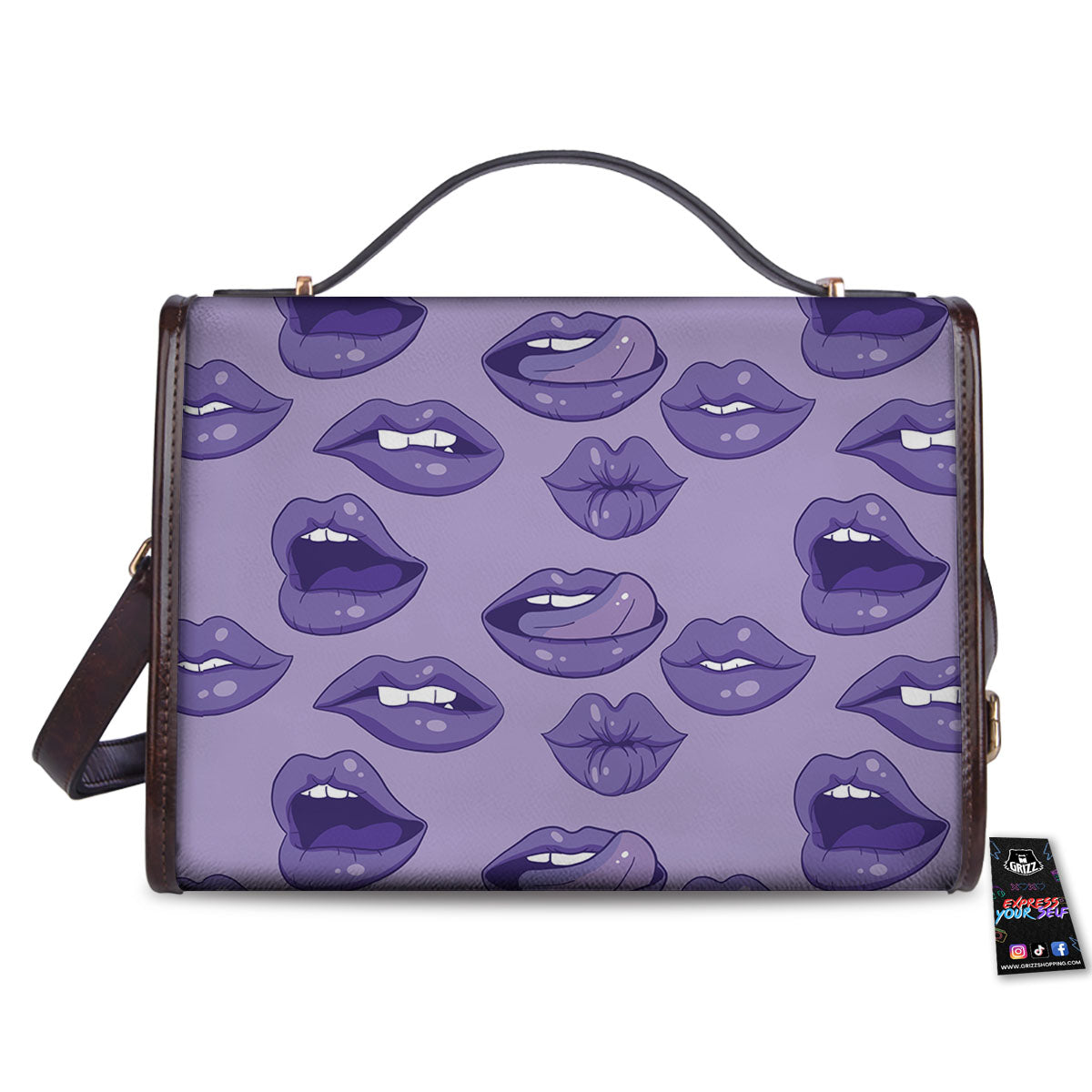 Lips Purple Print Pattern Women’s Satchel Bag