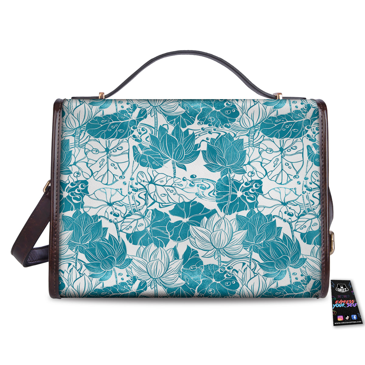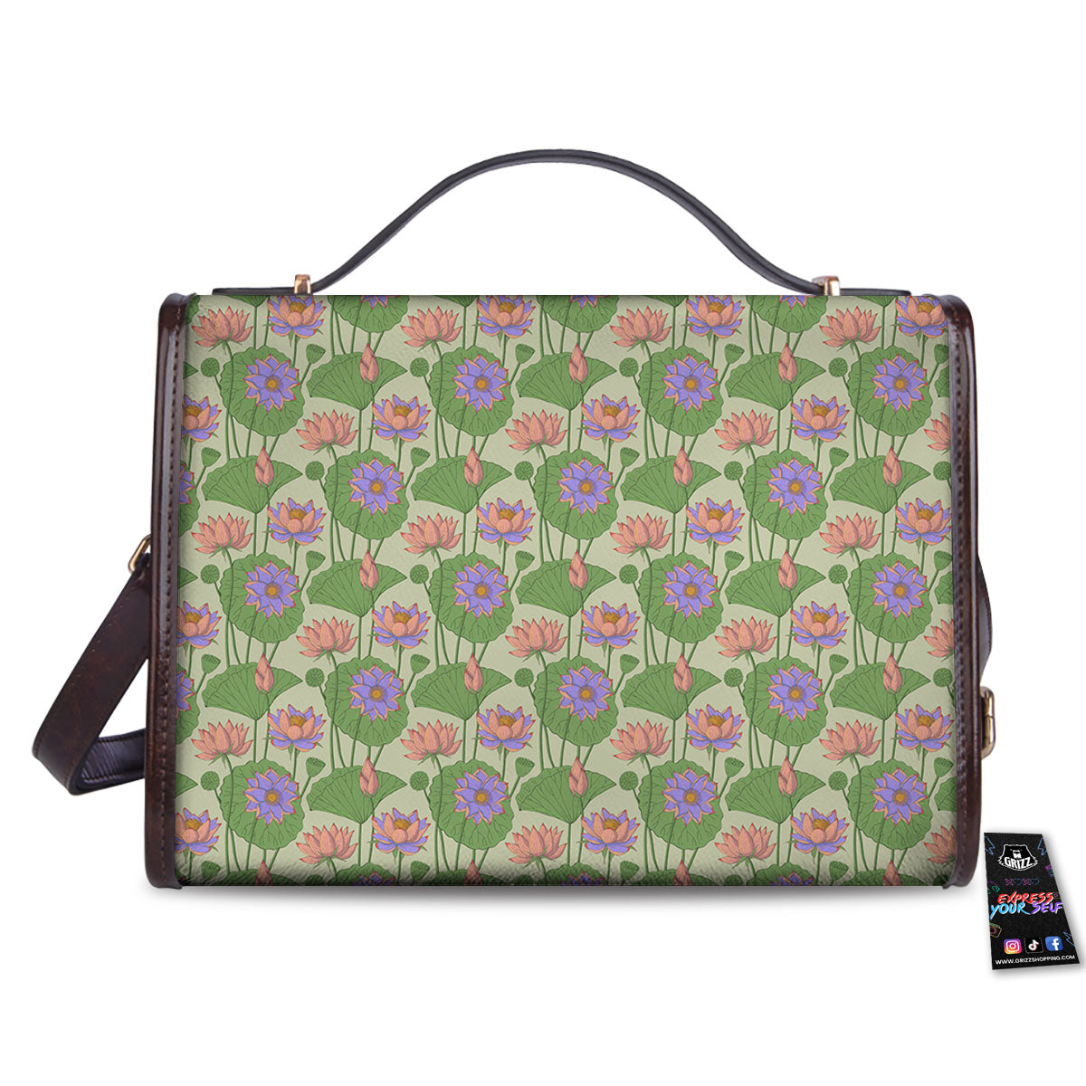 Lotus Leaf And Flower Print Pattern Women’s Satchel Bag