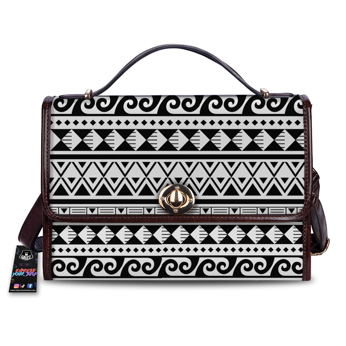 Aztec White And Black Print Pattern Women’s Satchel Bag
