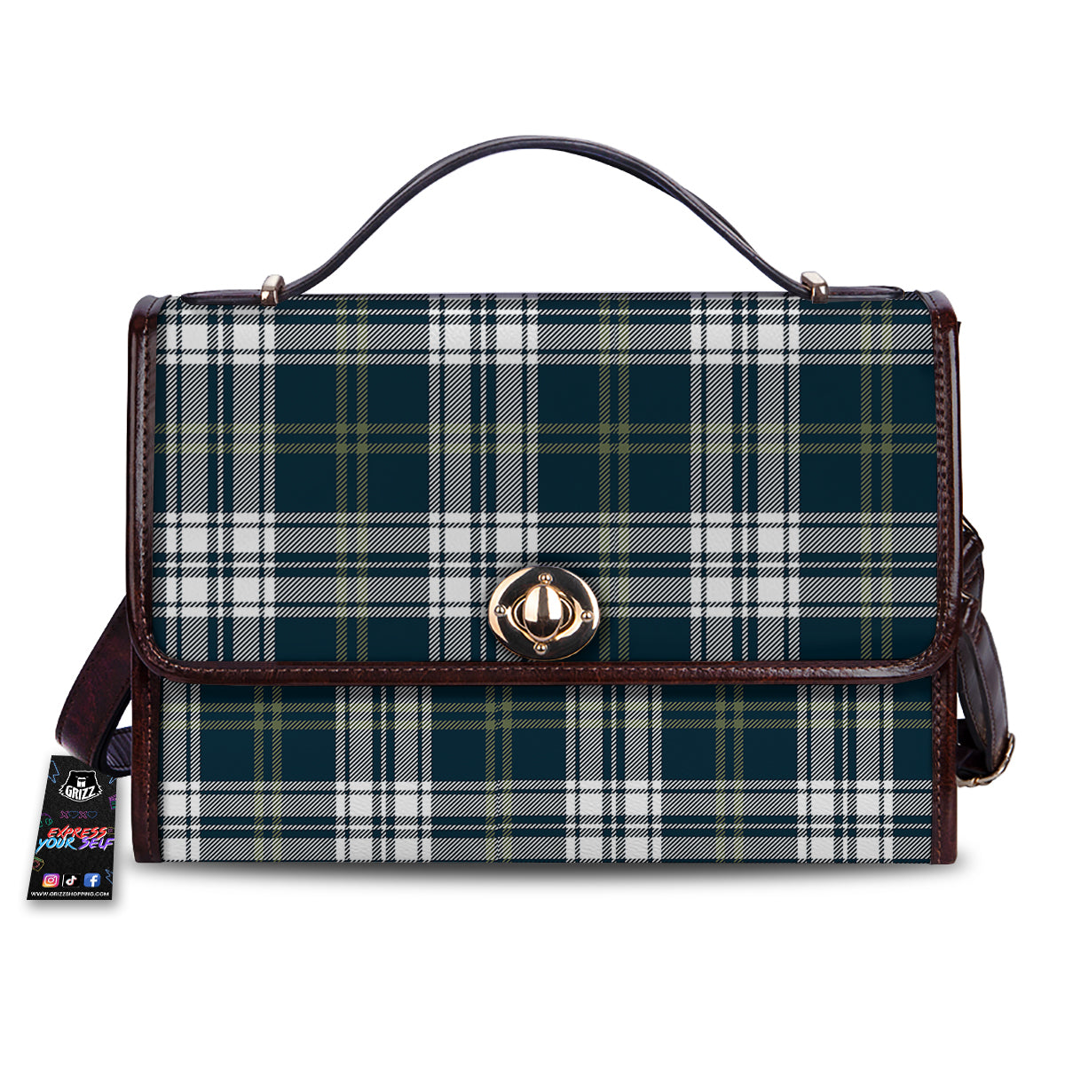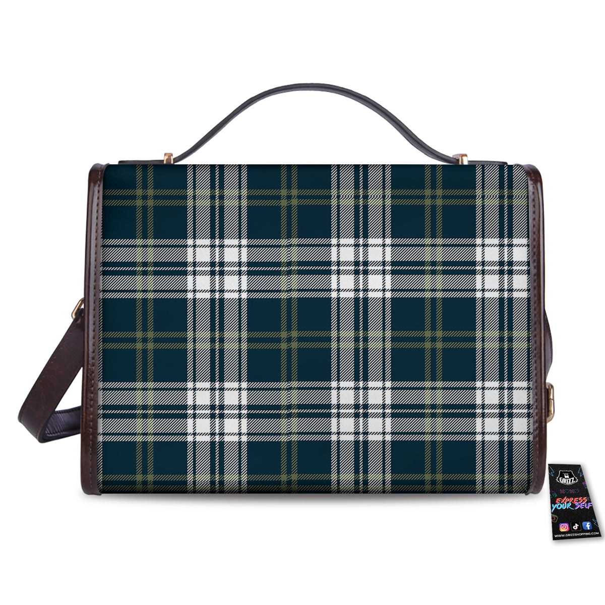 Navy White And Green Plaid Print Pattern Women’s Satchel Bag