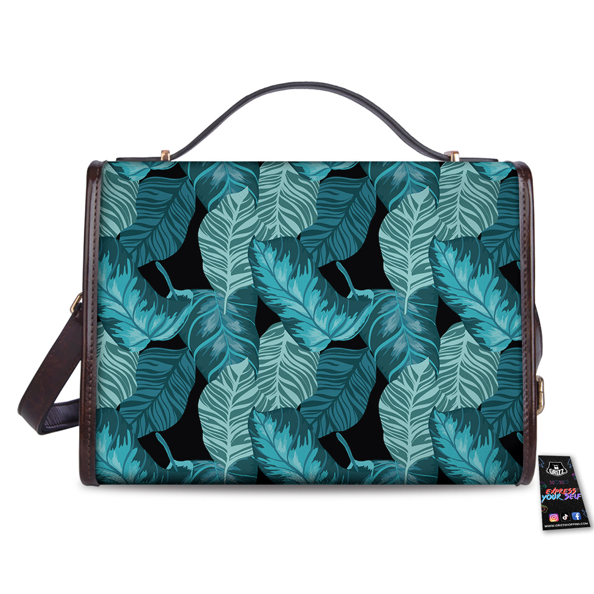 Banana Leaves Teal Print Pattern Women’s Satchel Bag
