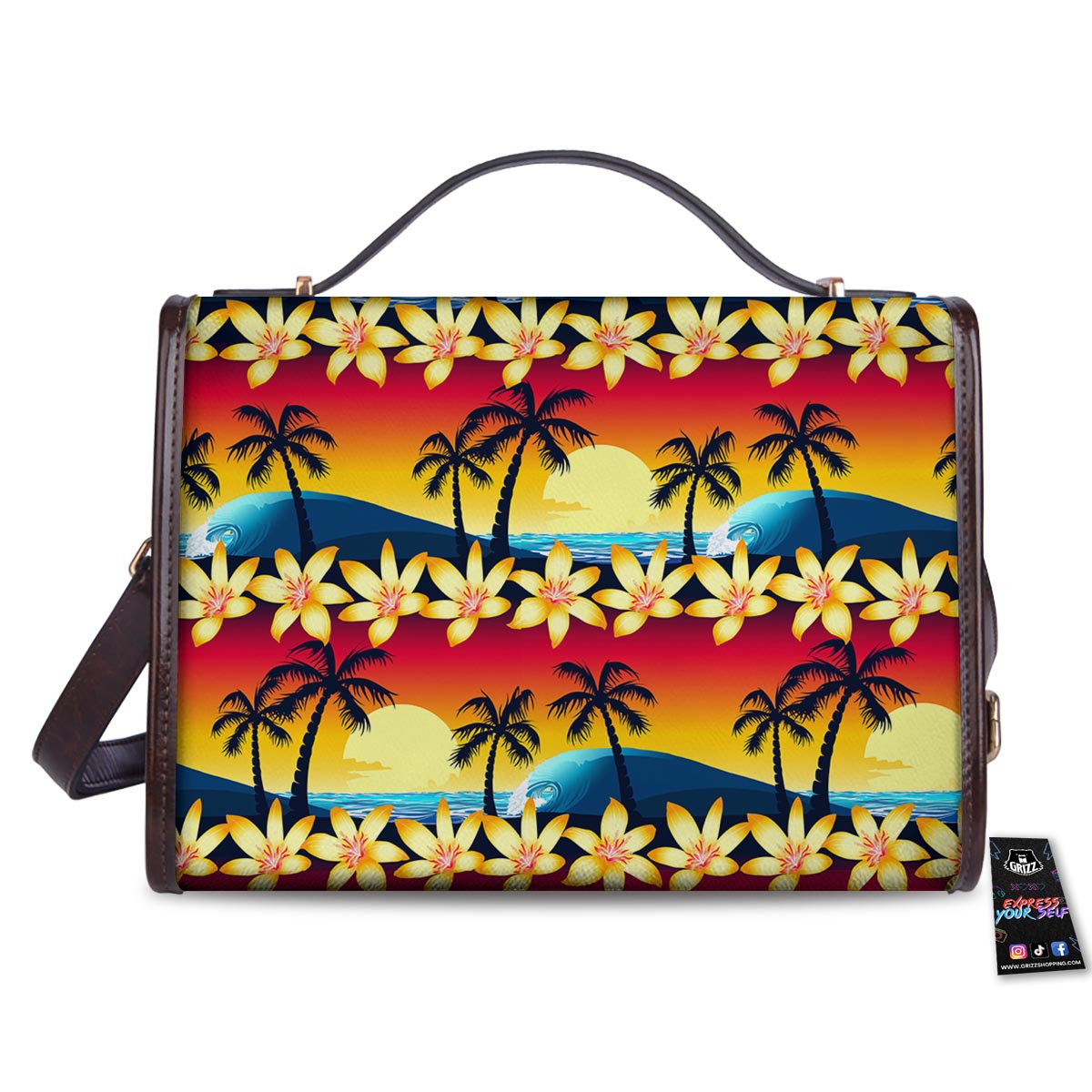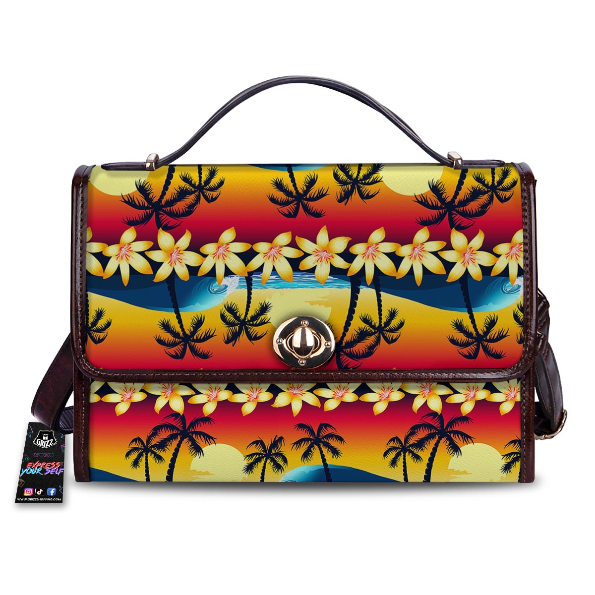 Palm Tree Sunset Hibiscus Print Pattern Women’s Satchel Bag