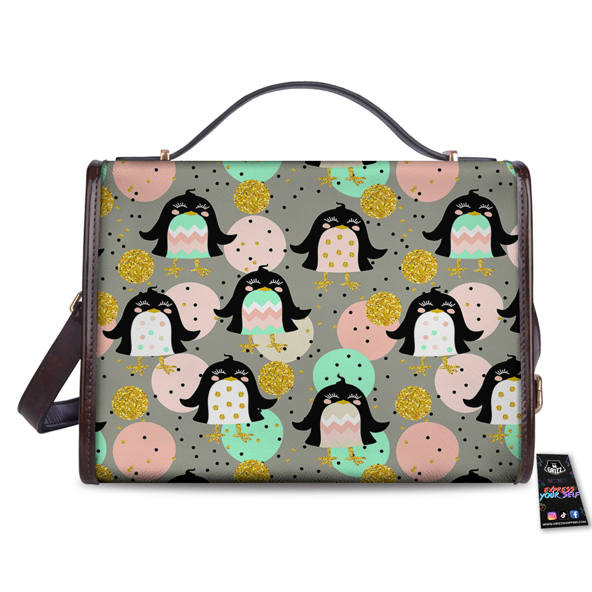 Penguin Xmas Print Pattern Women’s Satchel Bag