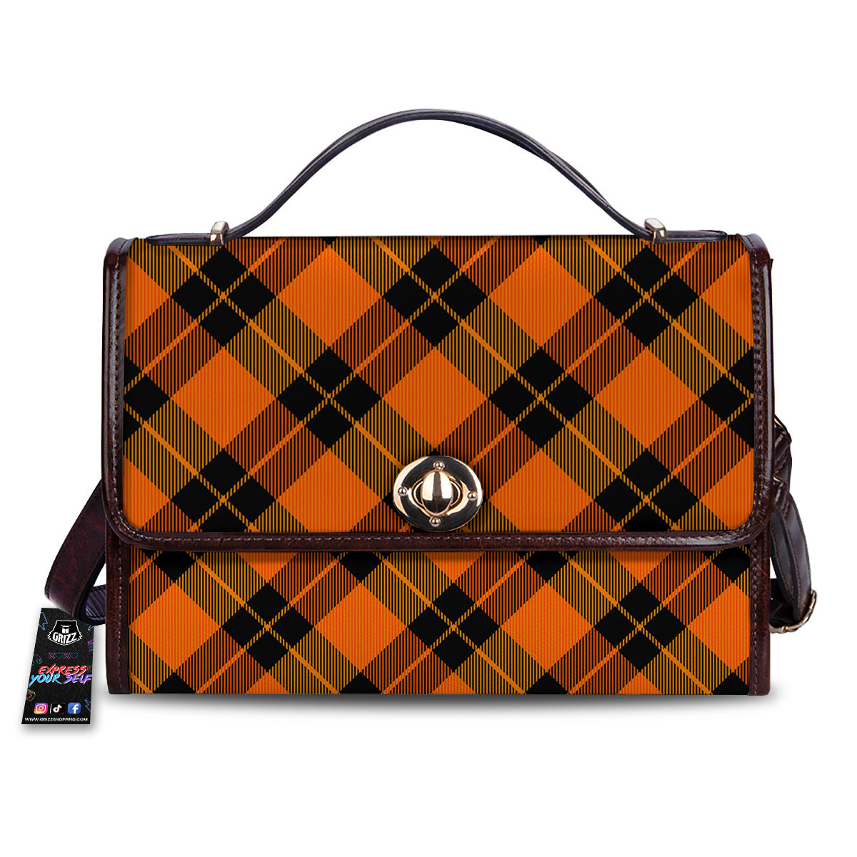 Black And Orange Plaid Print Pattern Women’s Satchel Bag