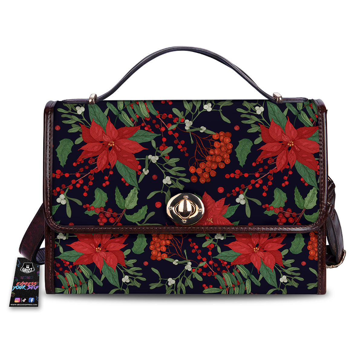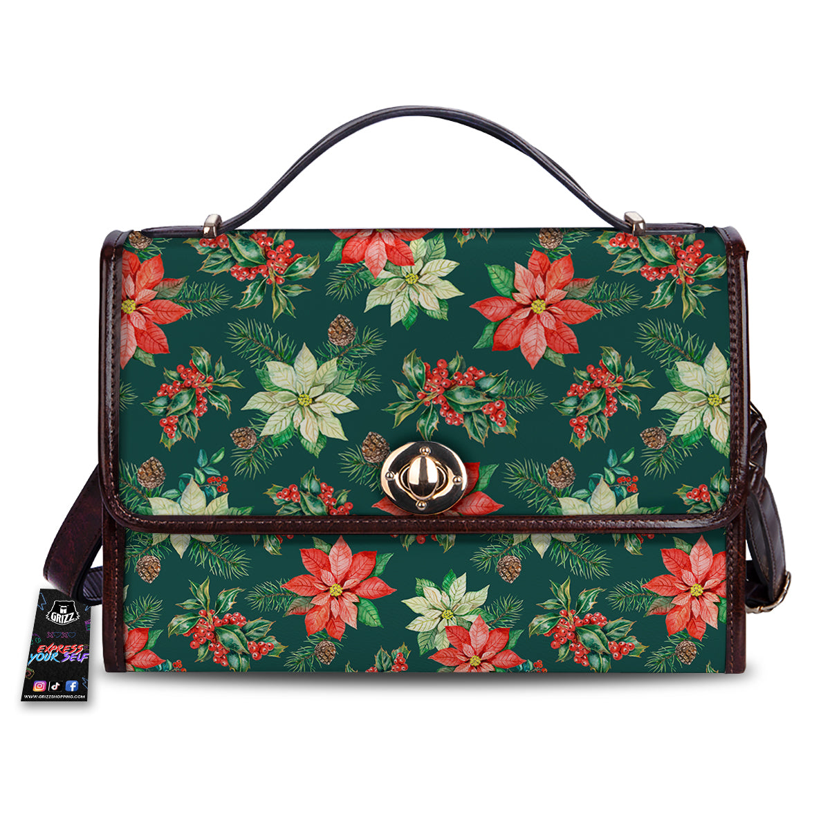 Poinsettia Xmas Print Pattern Women’s Satchel Bag