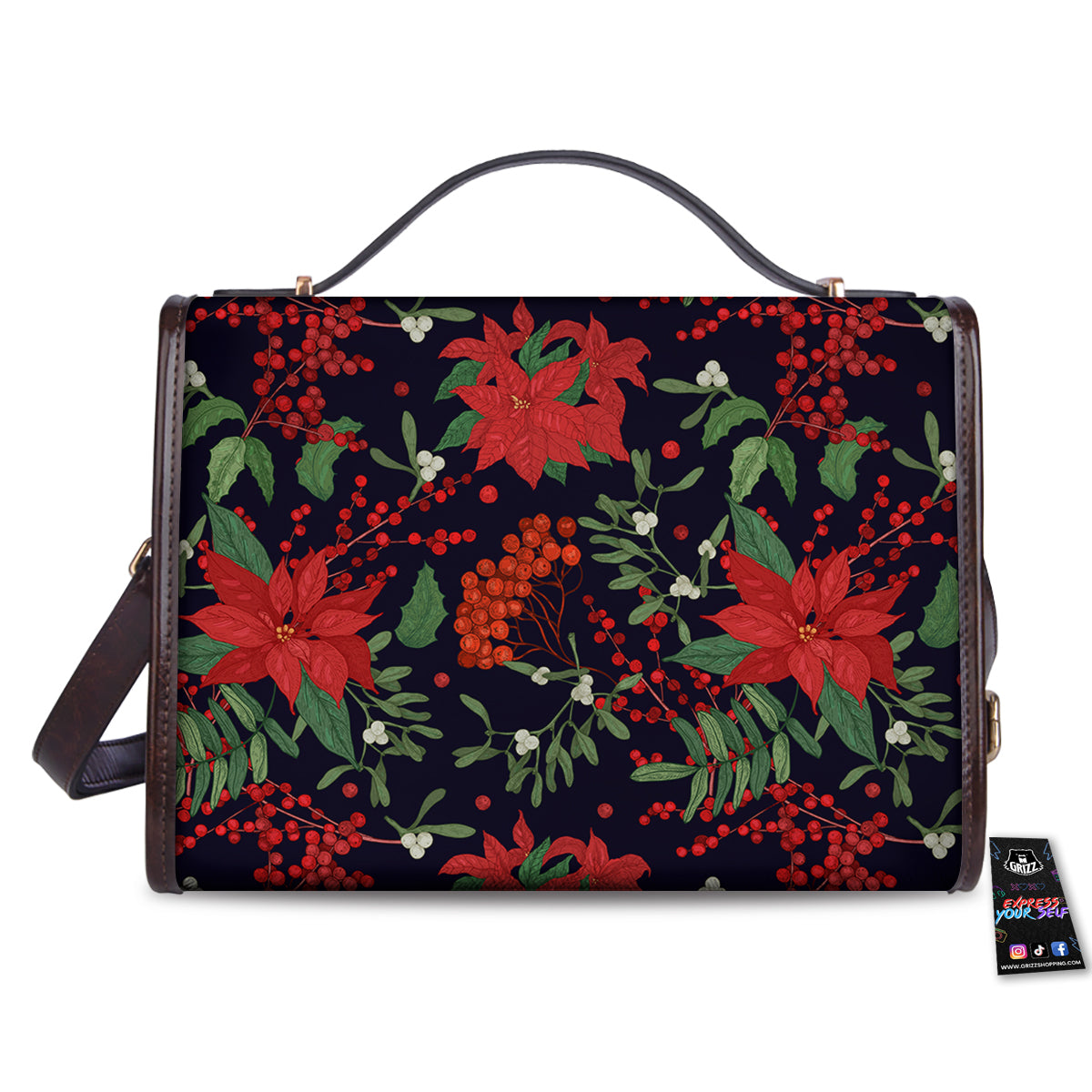 Poinsettia Christmas Vintage Print Pattern Women’s Satchel Bag