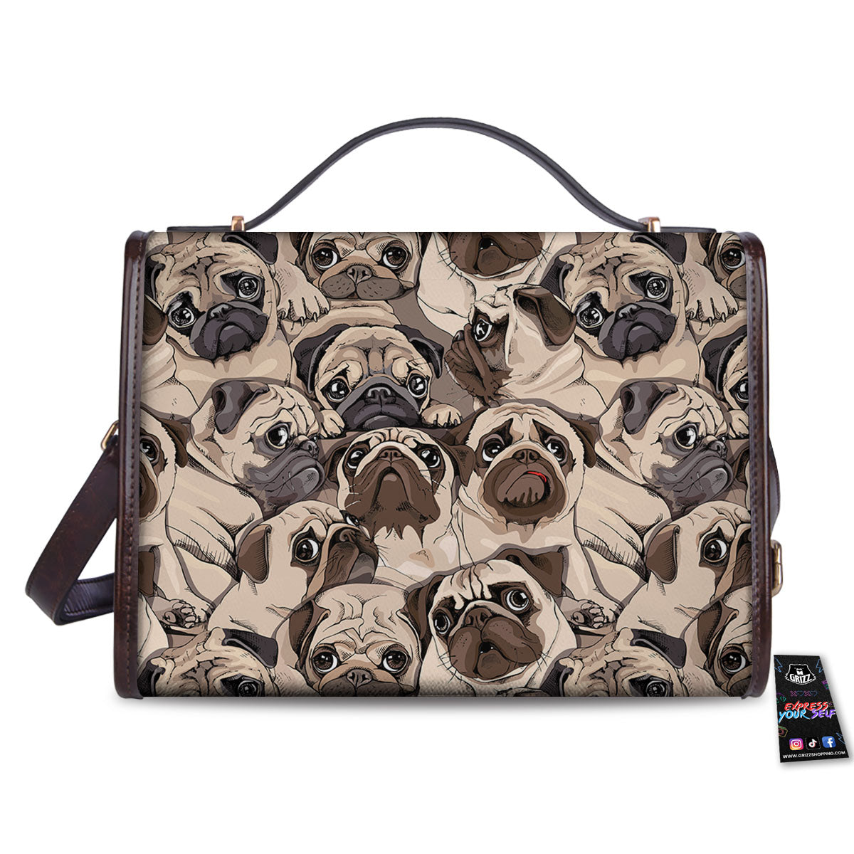 Portrait Pug Vintage Print Pattern Women’s Satchel Bag