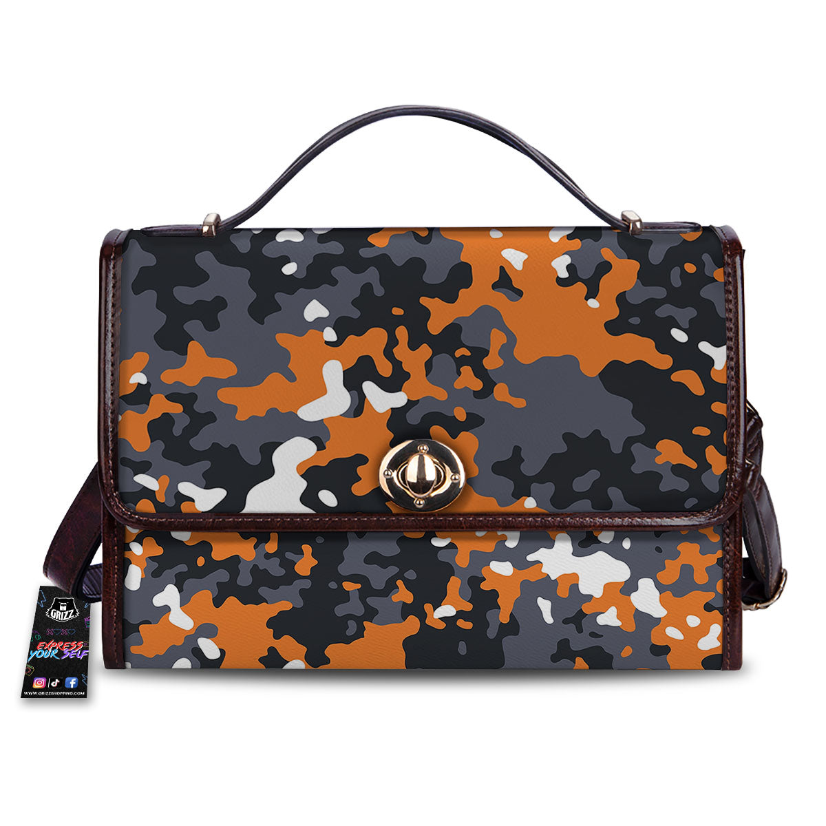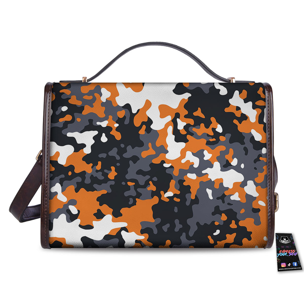 Black Orange And Grey Camouflage Print Women’s Satchel Bag