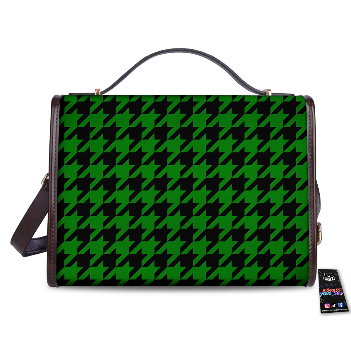 Black Green Jungle Houndstooth Print Women’s Satchel Bag