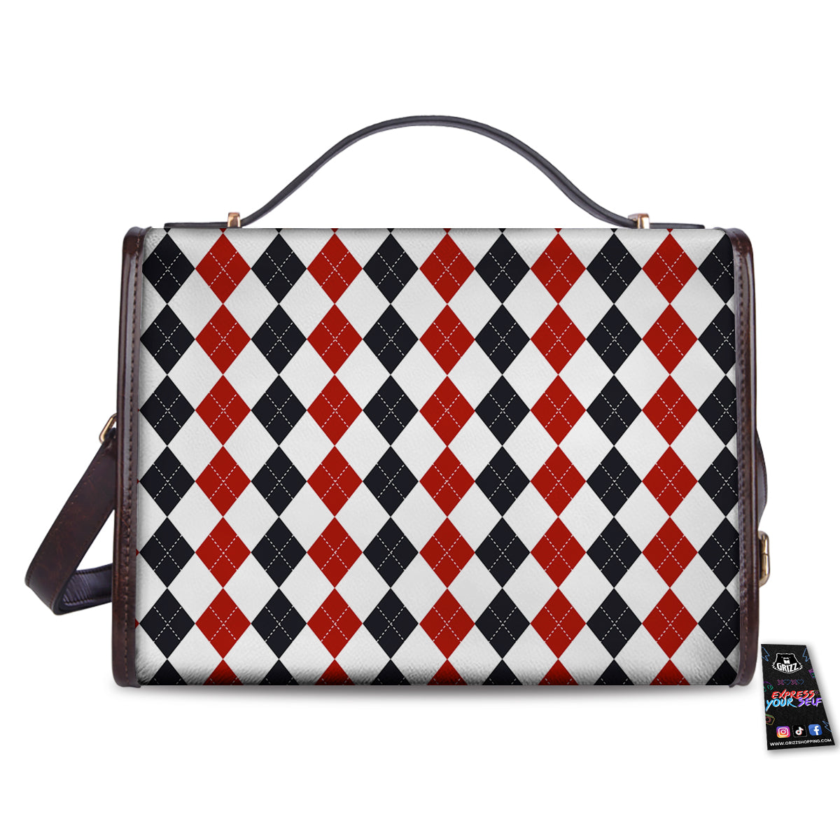Red White And Black Argyle Print Pattern Women’s Satchel Bag
