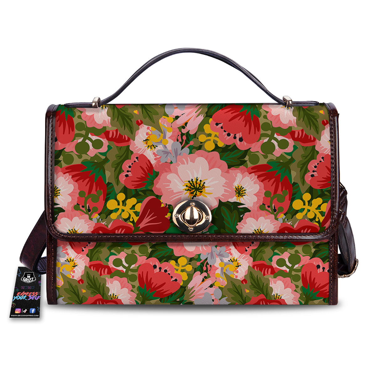 Rose Floral Red Pink Print Pattern Women’s Satchel Bag