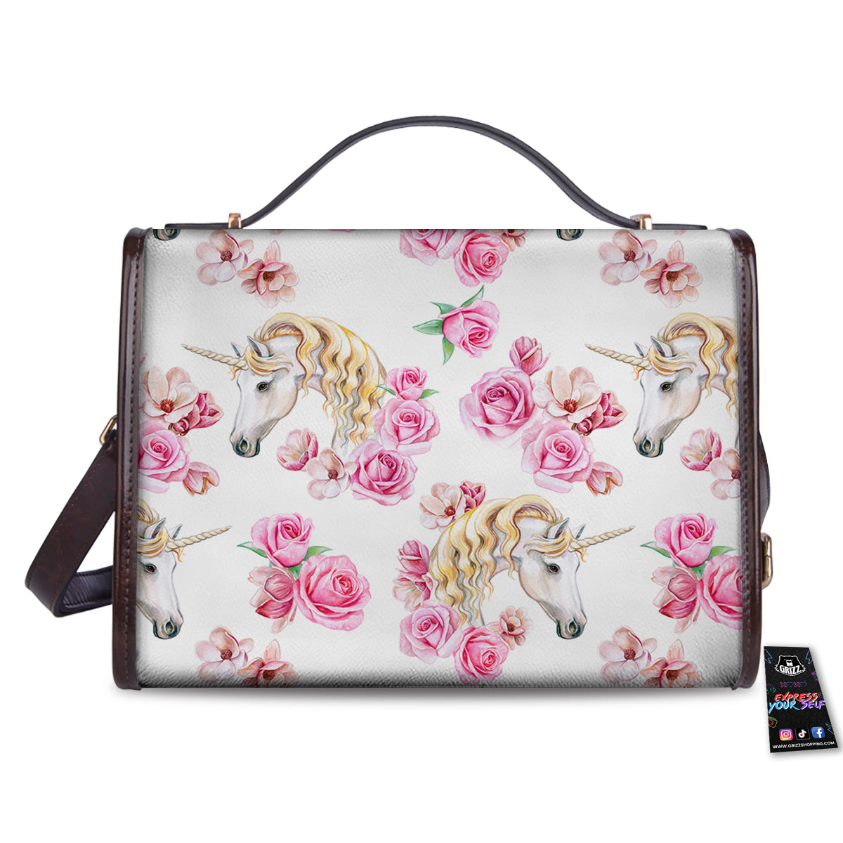 Rose Fairy White Unicorn Print Pattern Women’s Satchel Bag