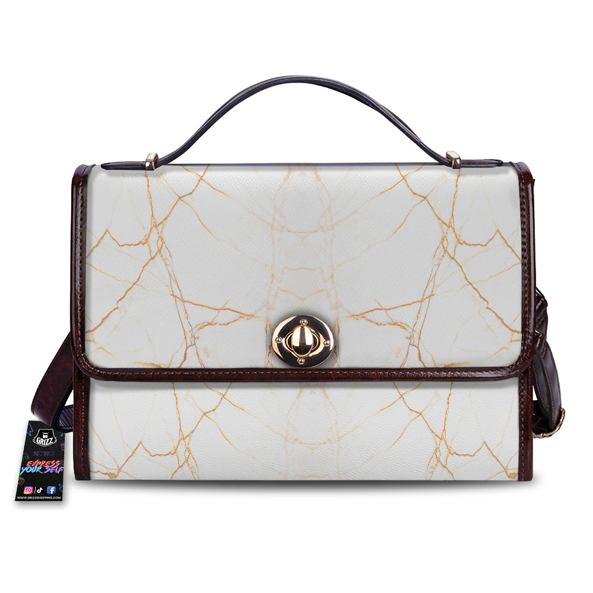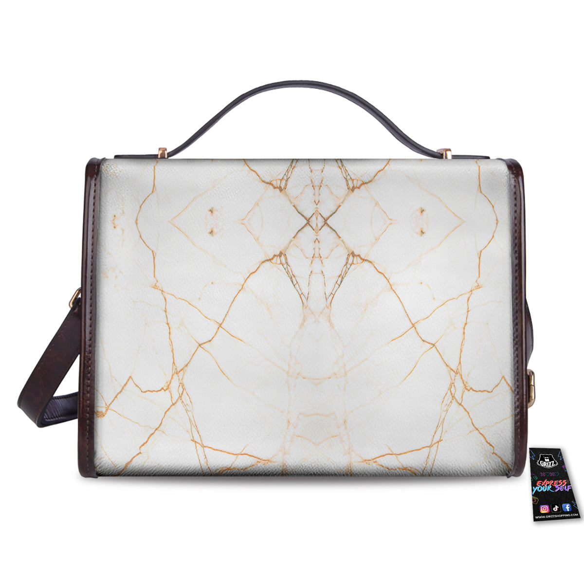 Scratch Marble White Gold Print Pattern Women’s Satchel Bag