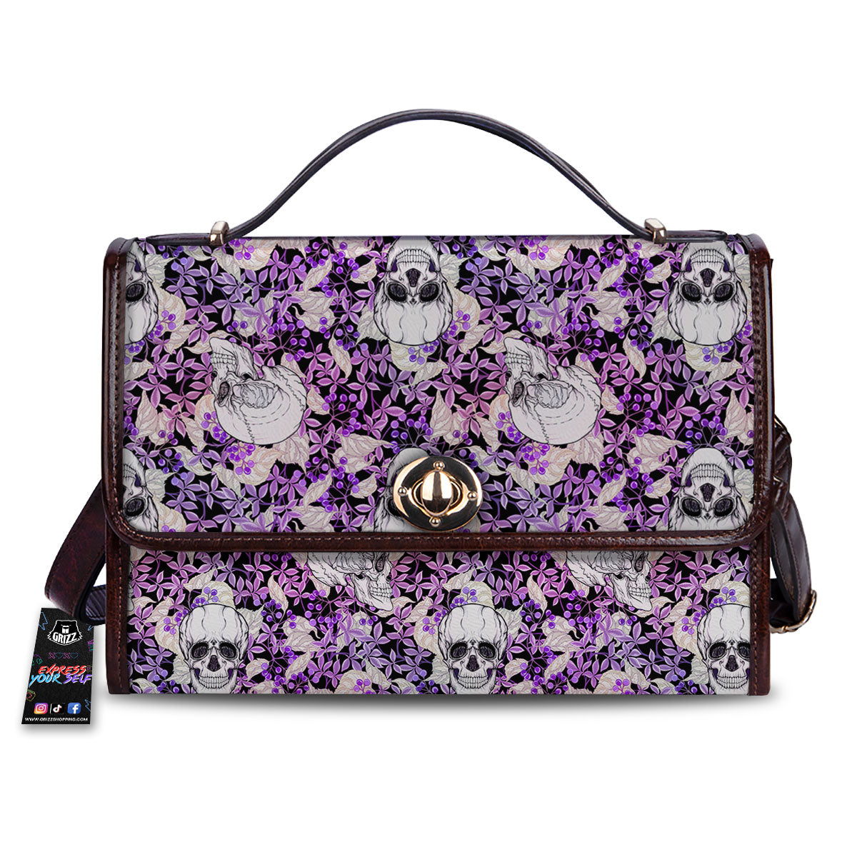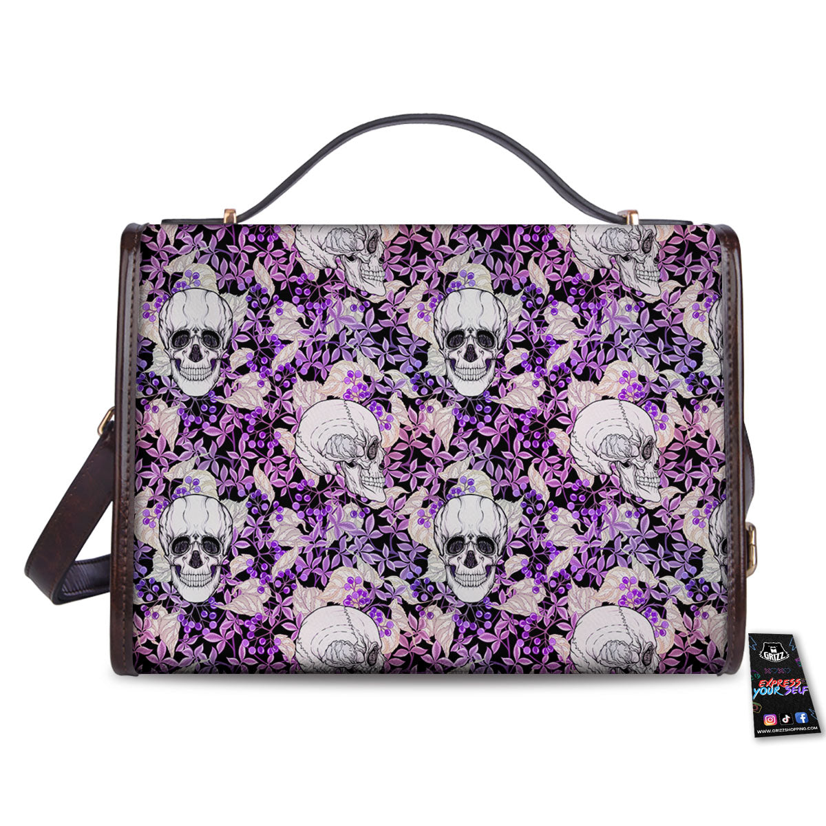 Skull Purple Tropical Print Pattern Women’s Satchel Bag