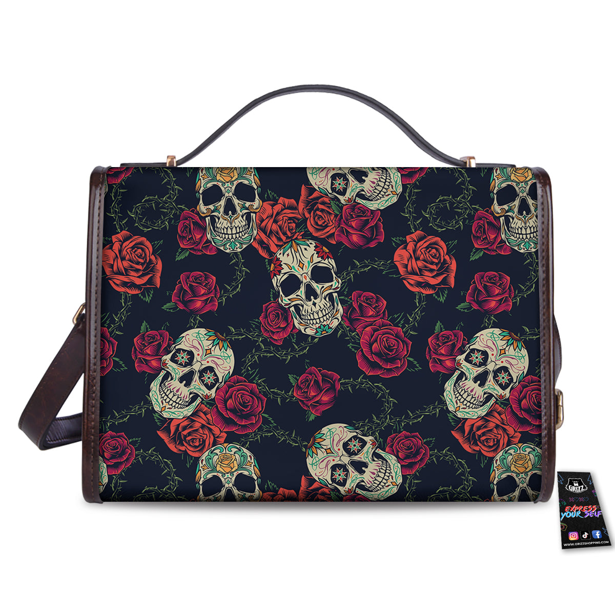 Skull Flowers Vintage Print Pattern Women’s Satchel Bag