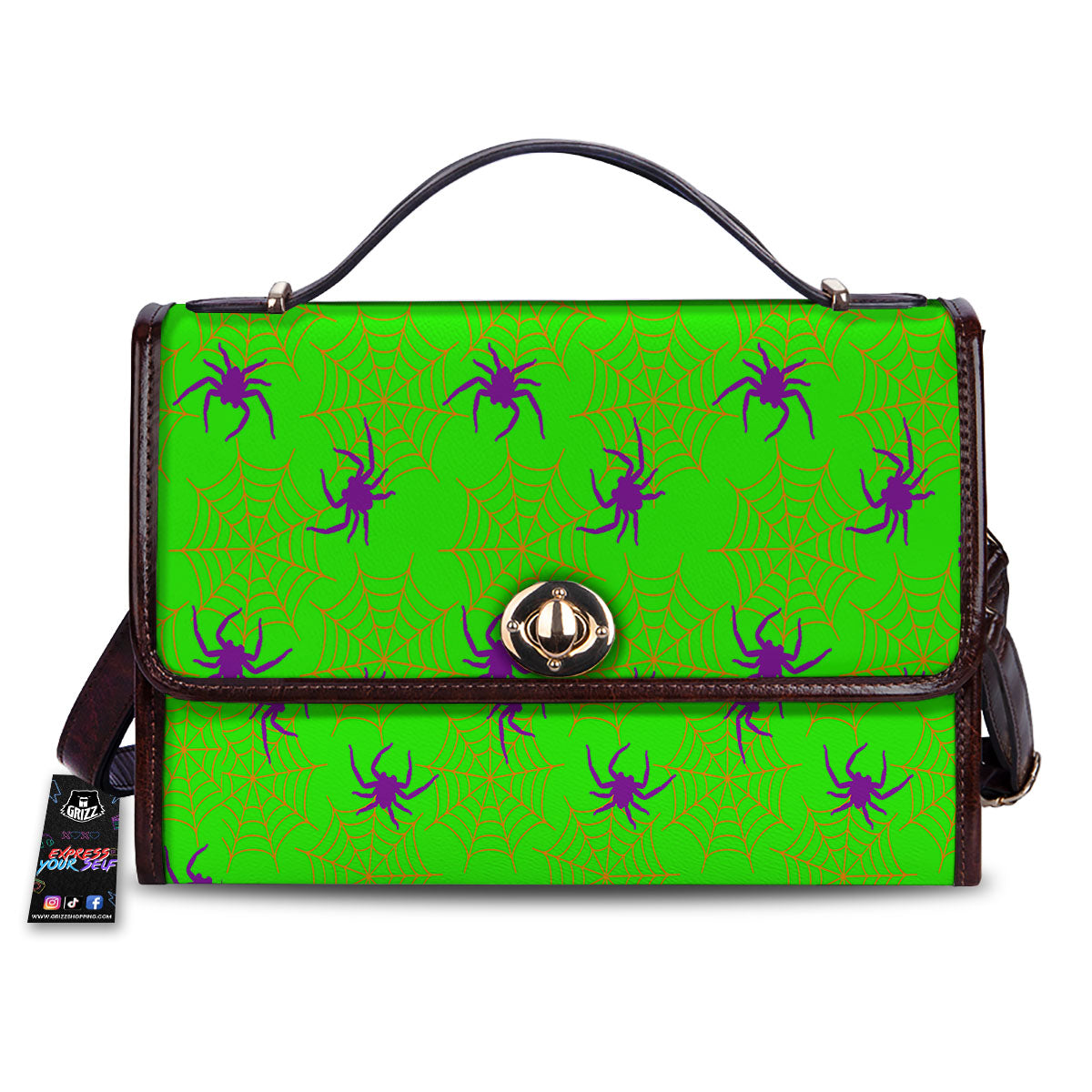 Spider Web Green And Purple Print Pattern Women’s Satchel Bag