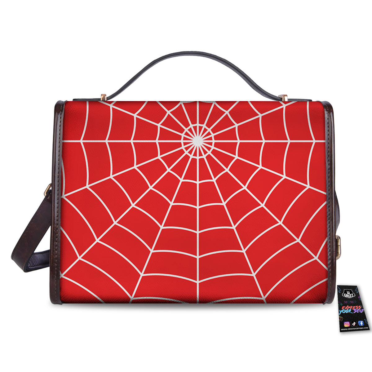 Spider Web White And Red Print Pattern Women’s Satchel Bag