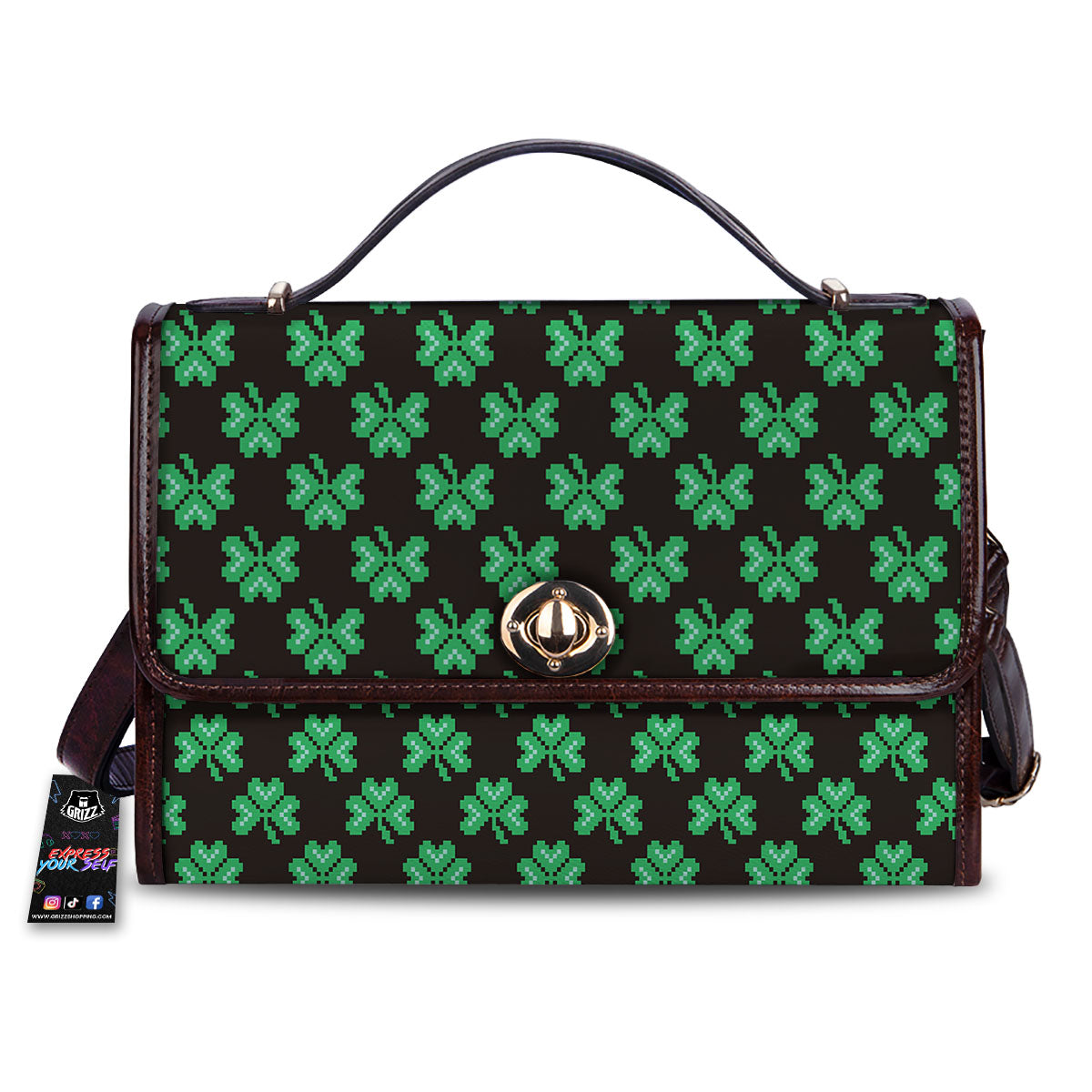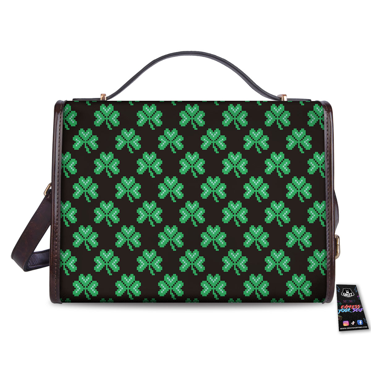 St. Patrick’s Day Pixel Clover Print Pattern Women’s Satchel Bag