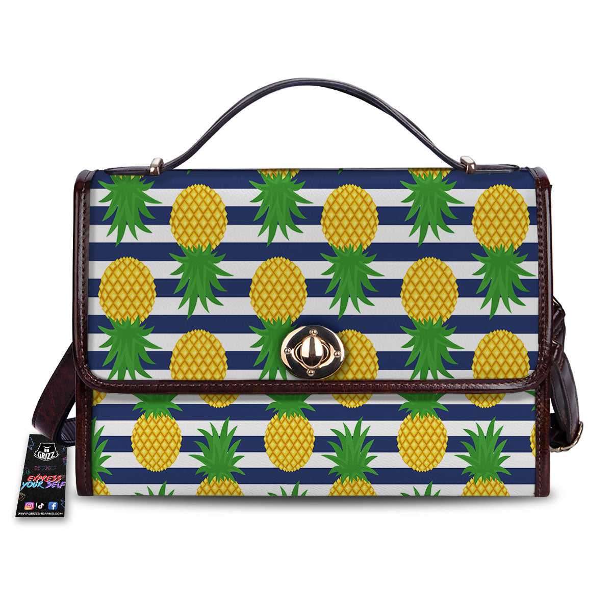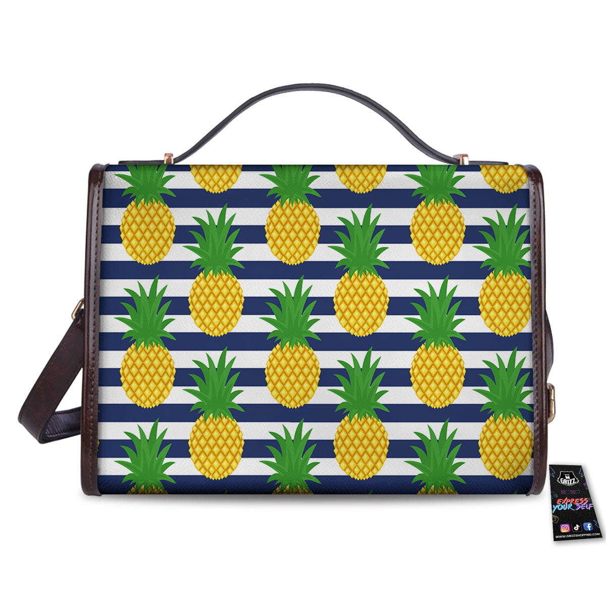 Striped Pineapple Print Pattern Women’s Satchel Bag