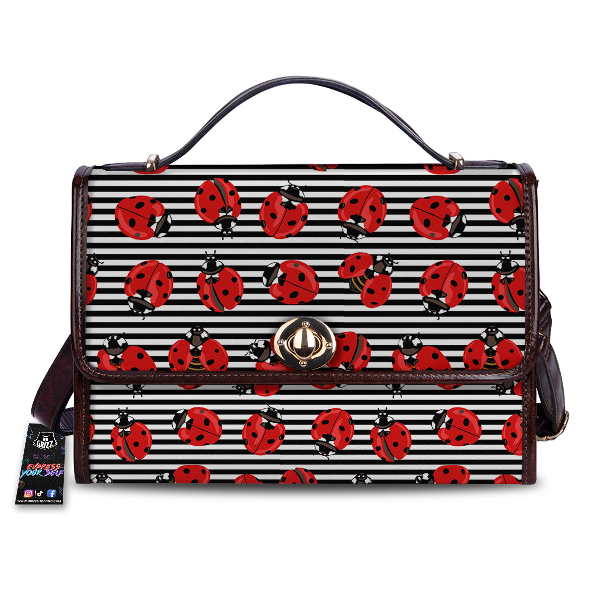 Striped Ladybug Print Pattern Women’s Satchel Bag