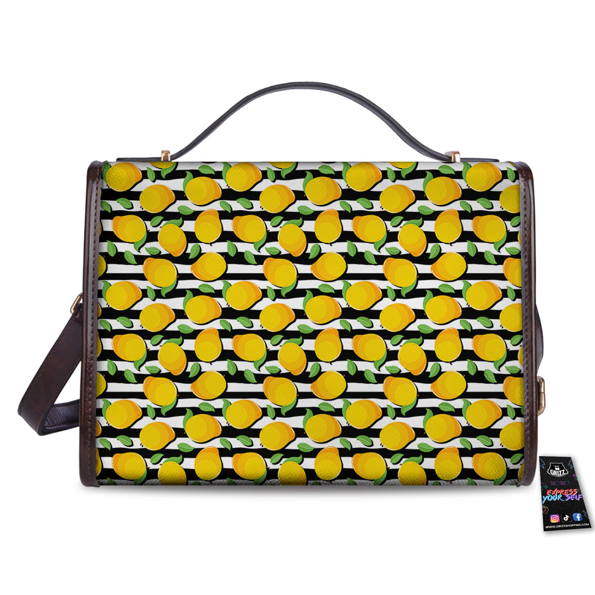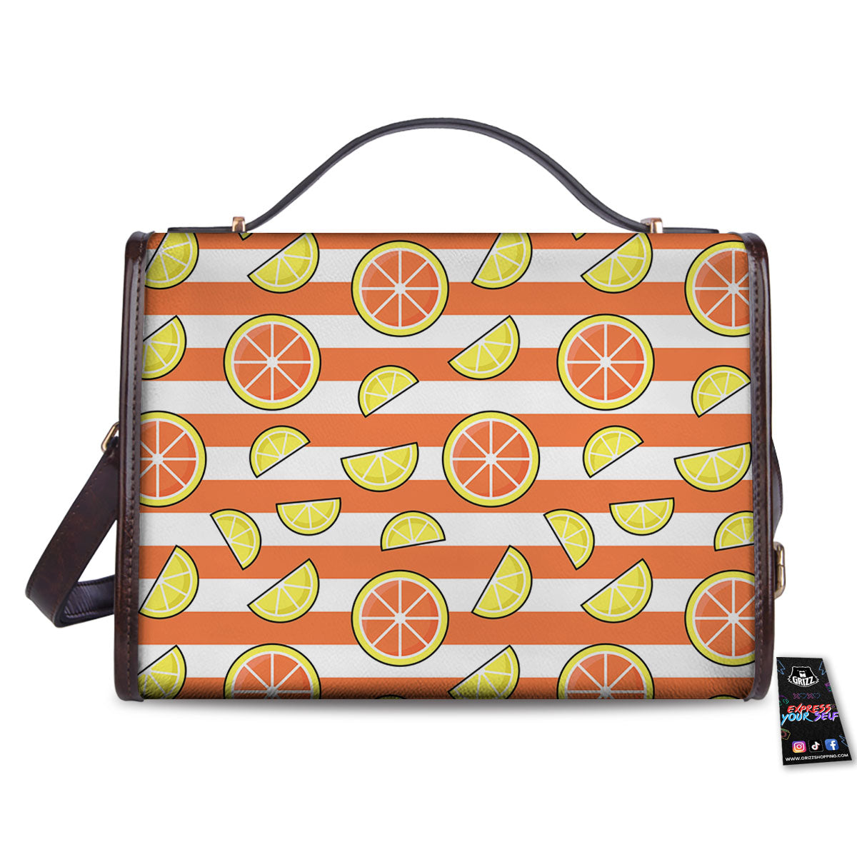 Striped Lemon And Orange Print Pattern Women’s Satchel Bag