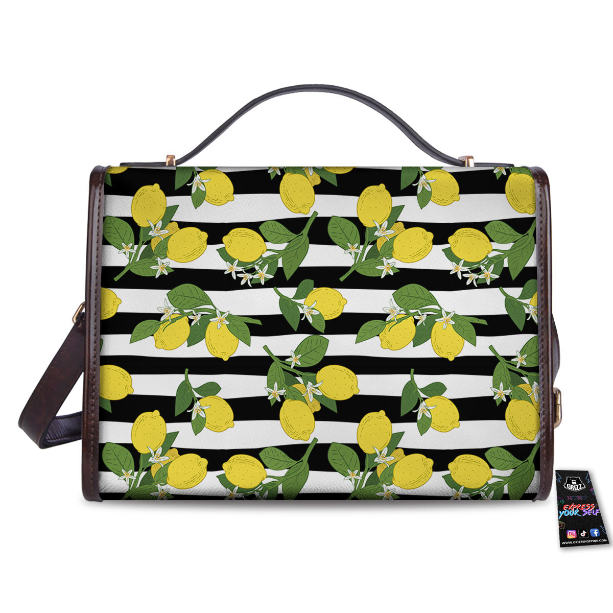 Striped Lemon Print Pattern Women’s Satchel Bag