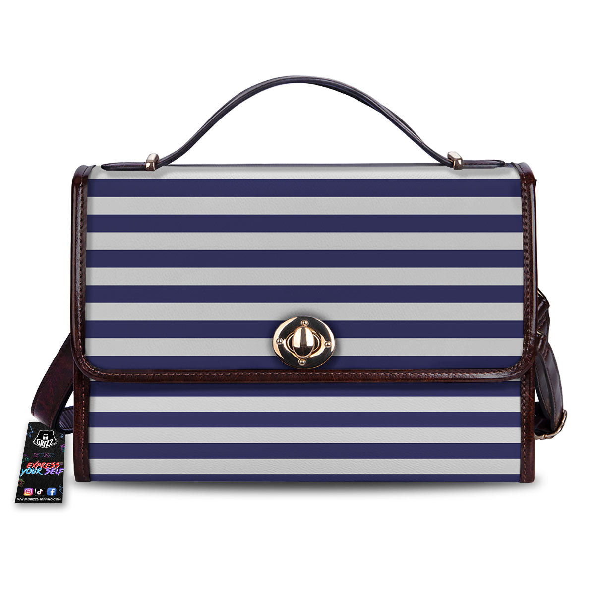 Striped White And Navy Print Pattern Women’s Satchel Bag