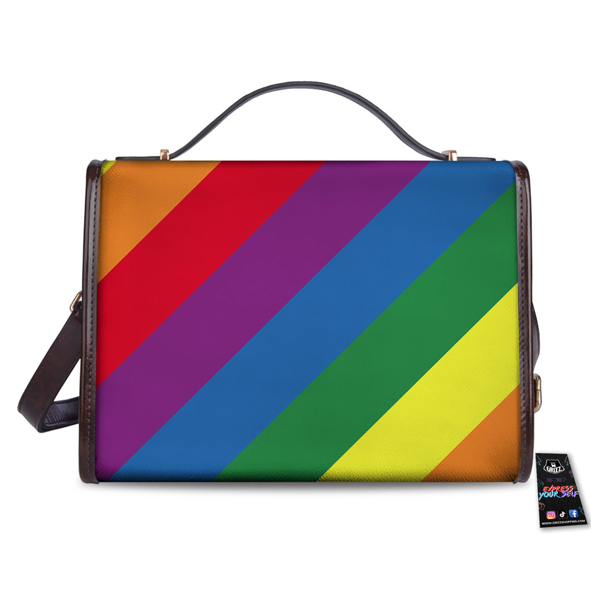 Striped Rainbow Diagonal Print Pattern Women’s Satchel Bag