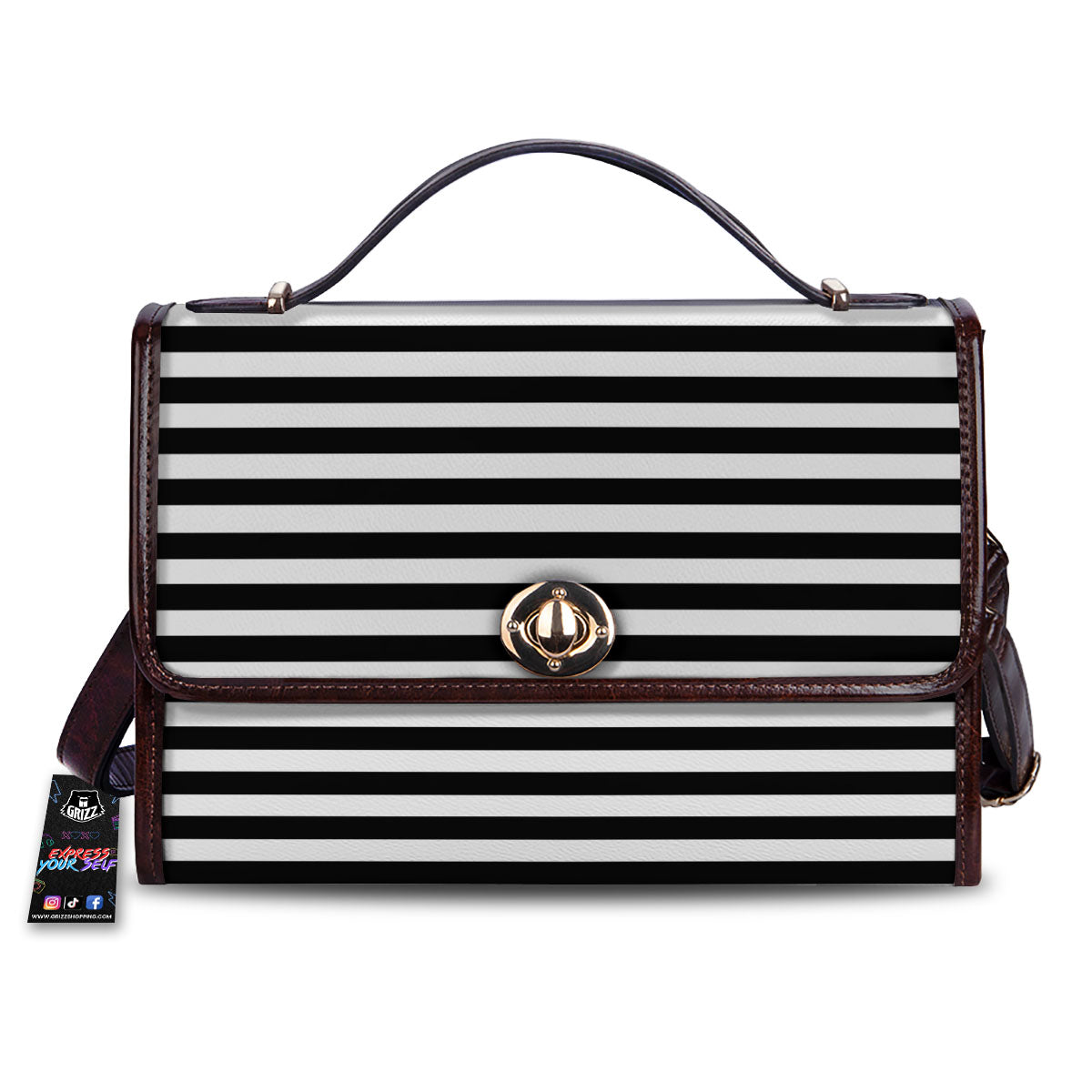 Striped White And Black Print Pattern Women’s Satchel Bag