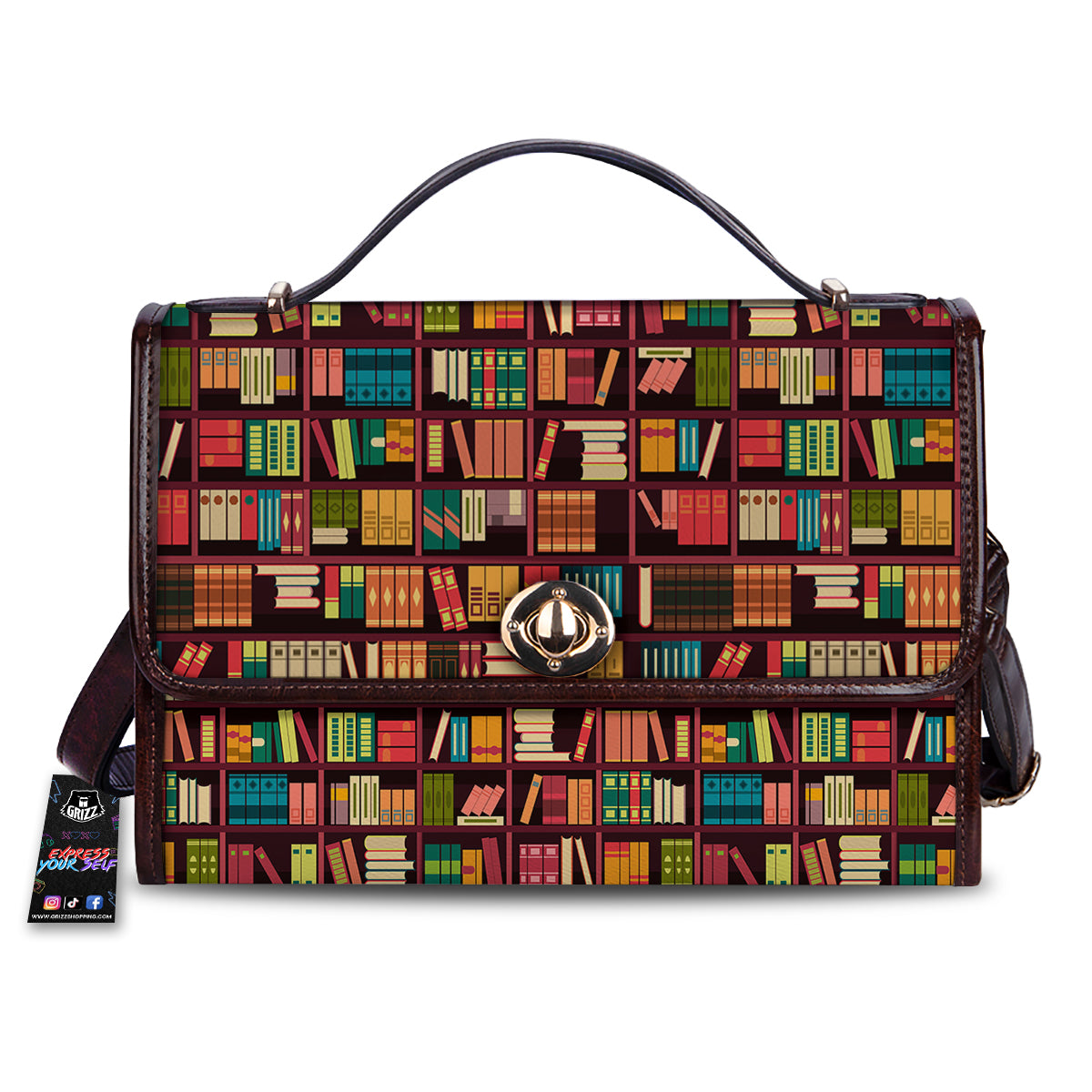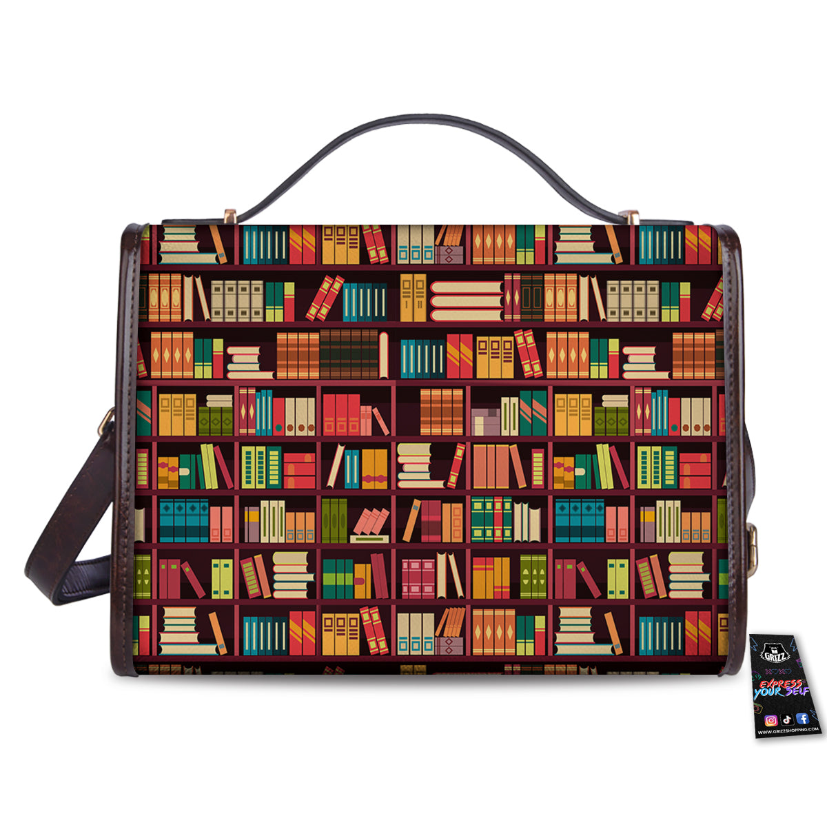 Bookshelf Vintage Print Pattern Women’s Satchel Bag