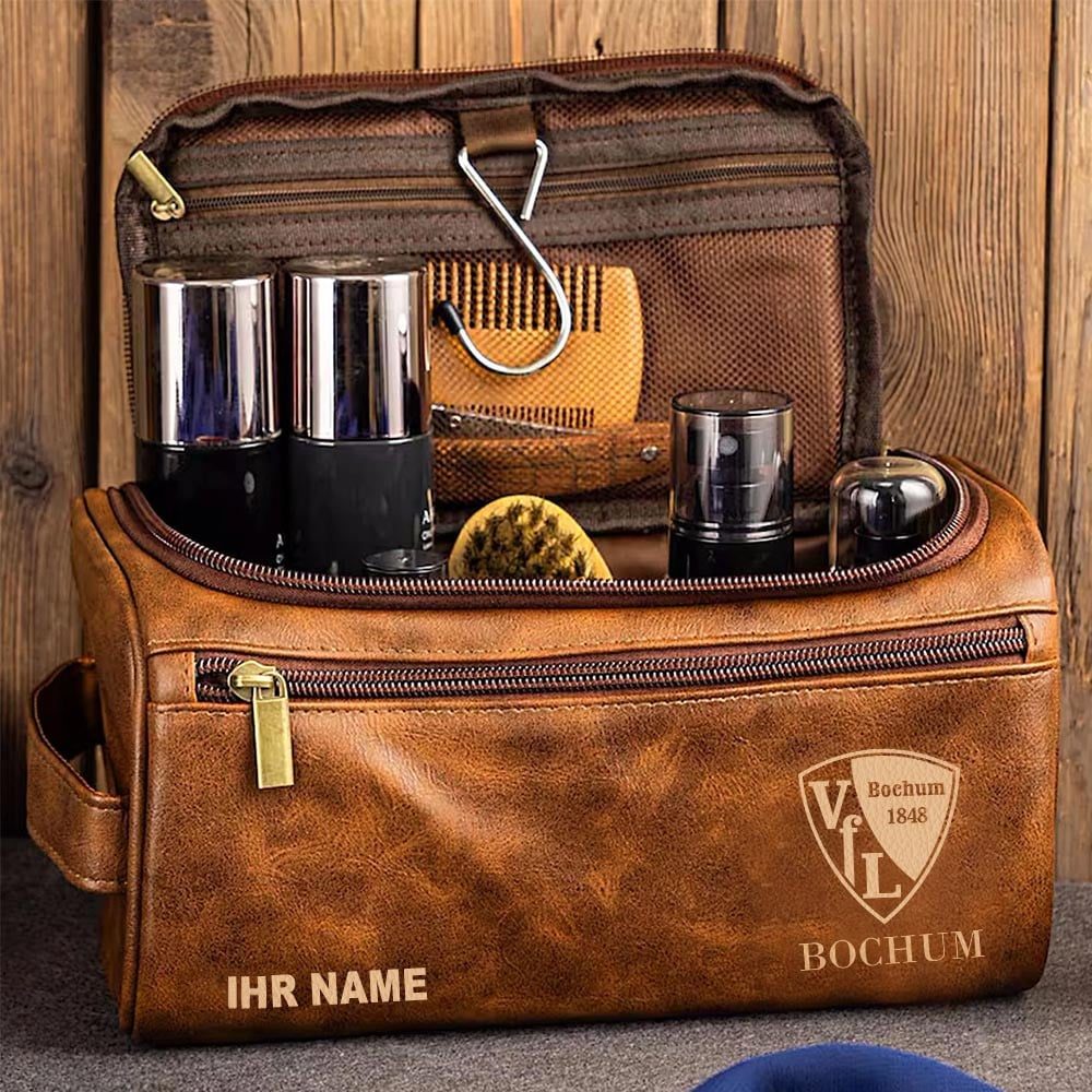 VfL Bochum 1848 Custom Name Leather Toiletry Bag, Fishing Leather Toiletry Bag