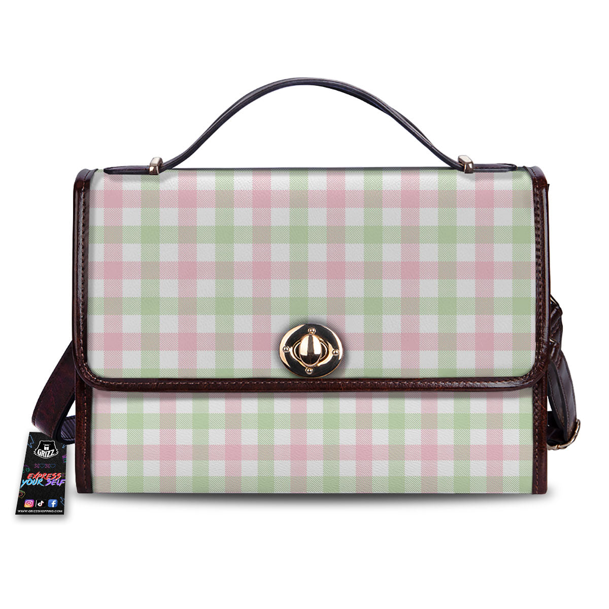Buffalo Plaid White Pink And Green Print Pattern Women’s Satchel Bag