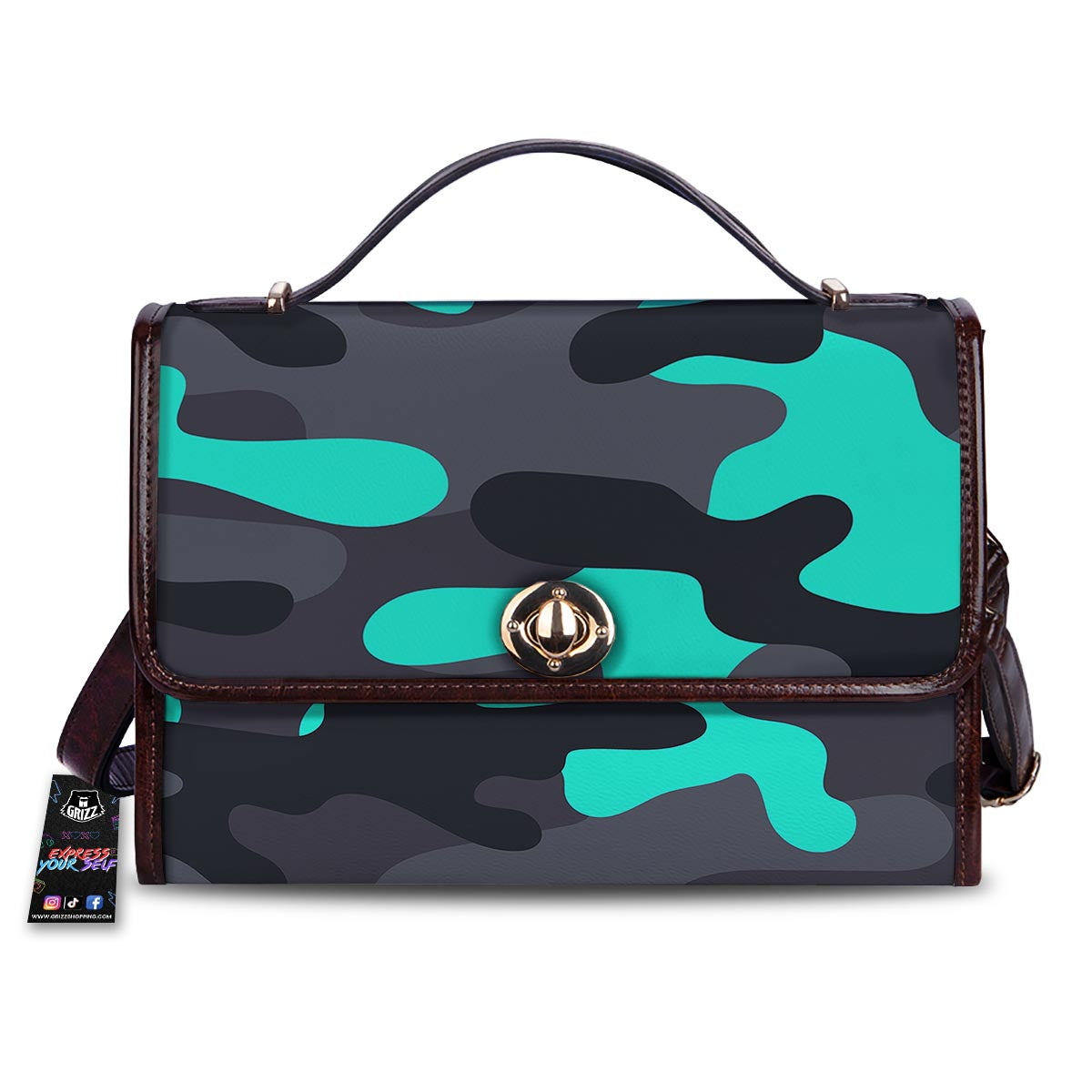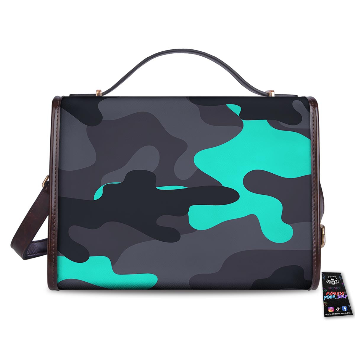 Camouflage Black And Teal Print Women’s Satchel Bag