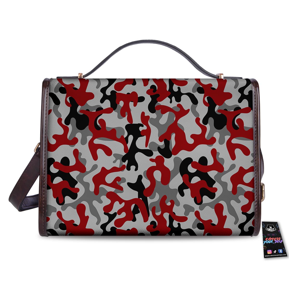 Camouflage Red Grey Print Pattern Women’s Satchel Bag