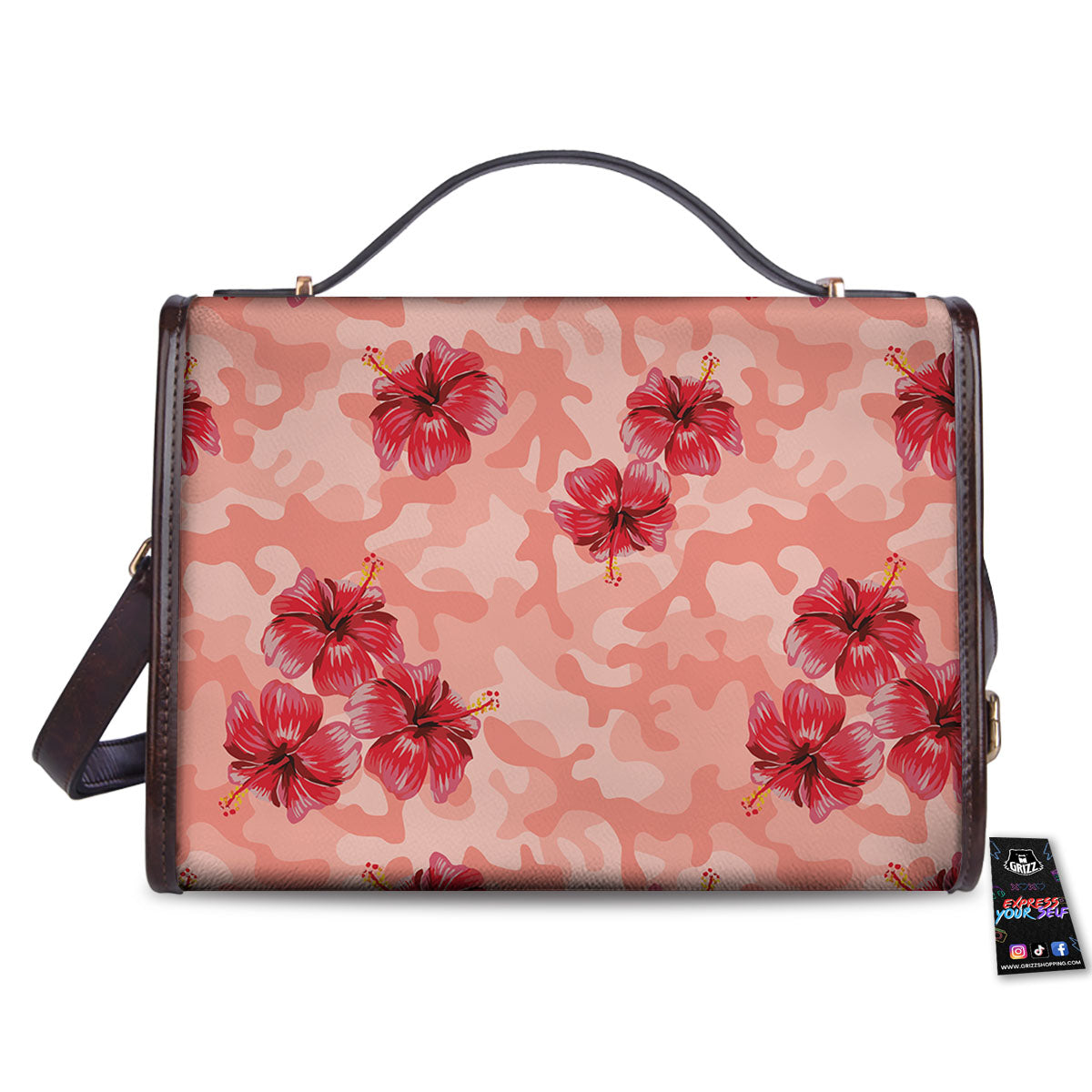 Camouflage Pink Hibiscus Flower Print Pattern Women’s Satchel Bag