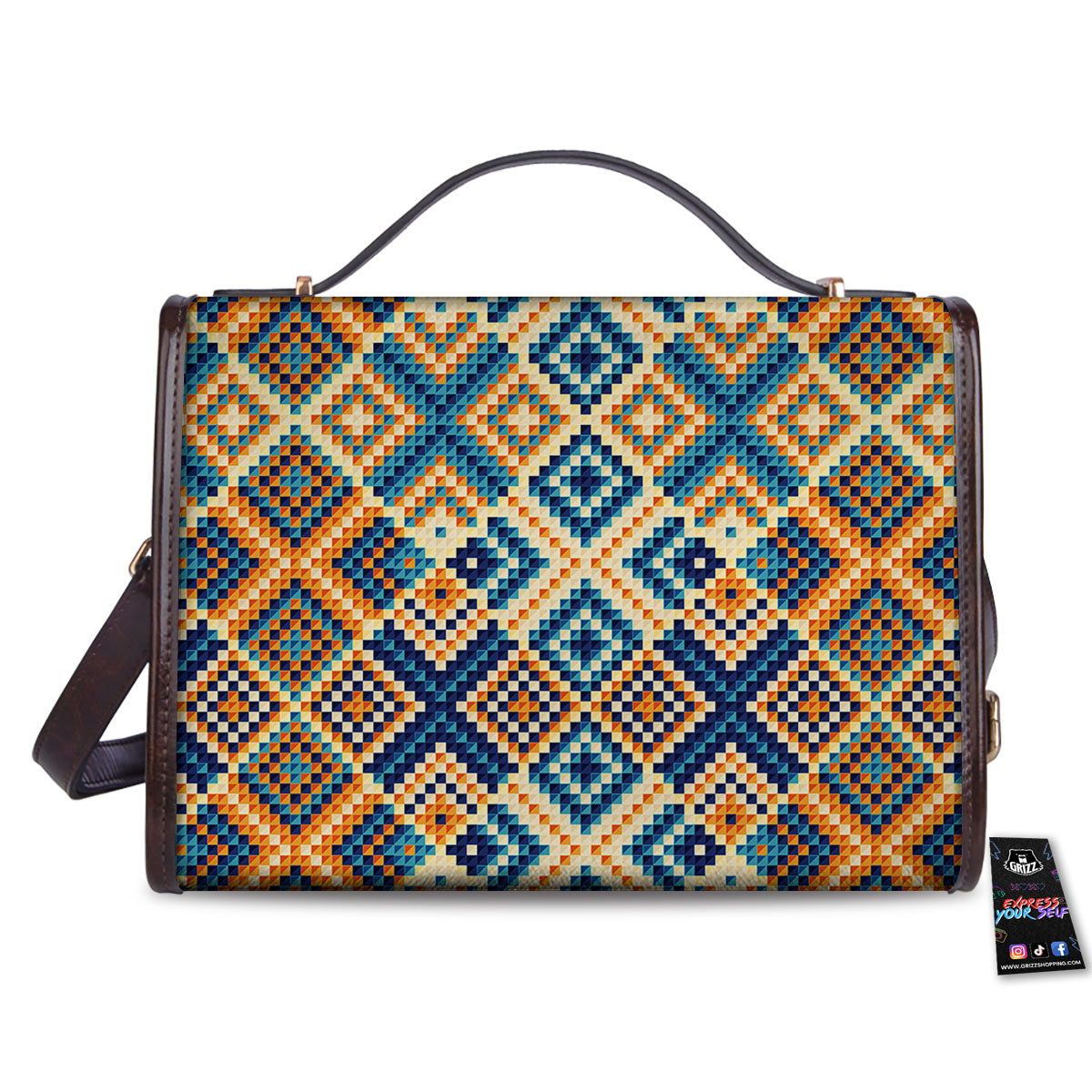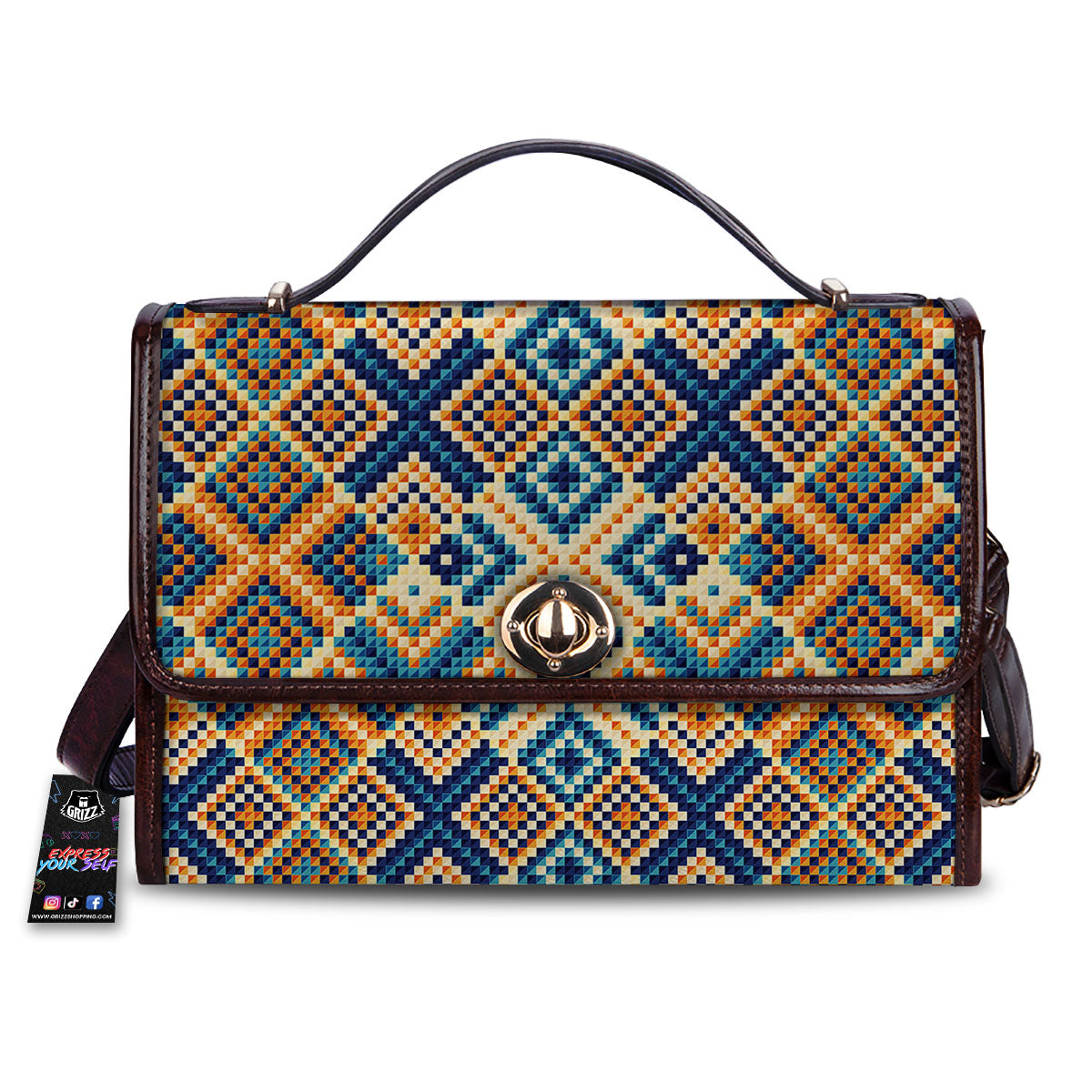 Ethnic Pixel Print Pattern Women’s Satchel Bag