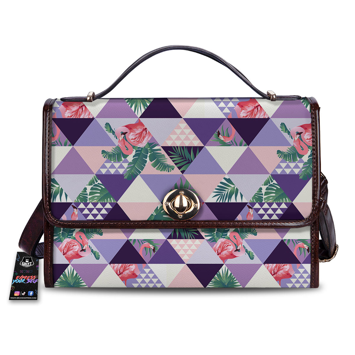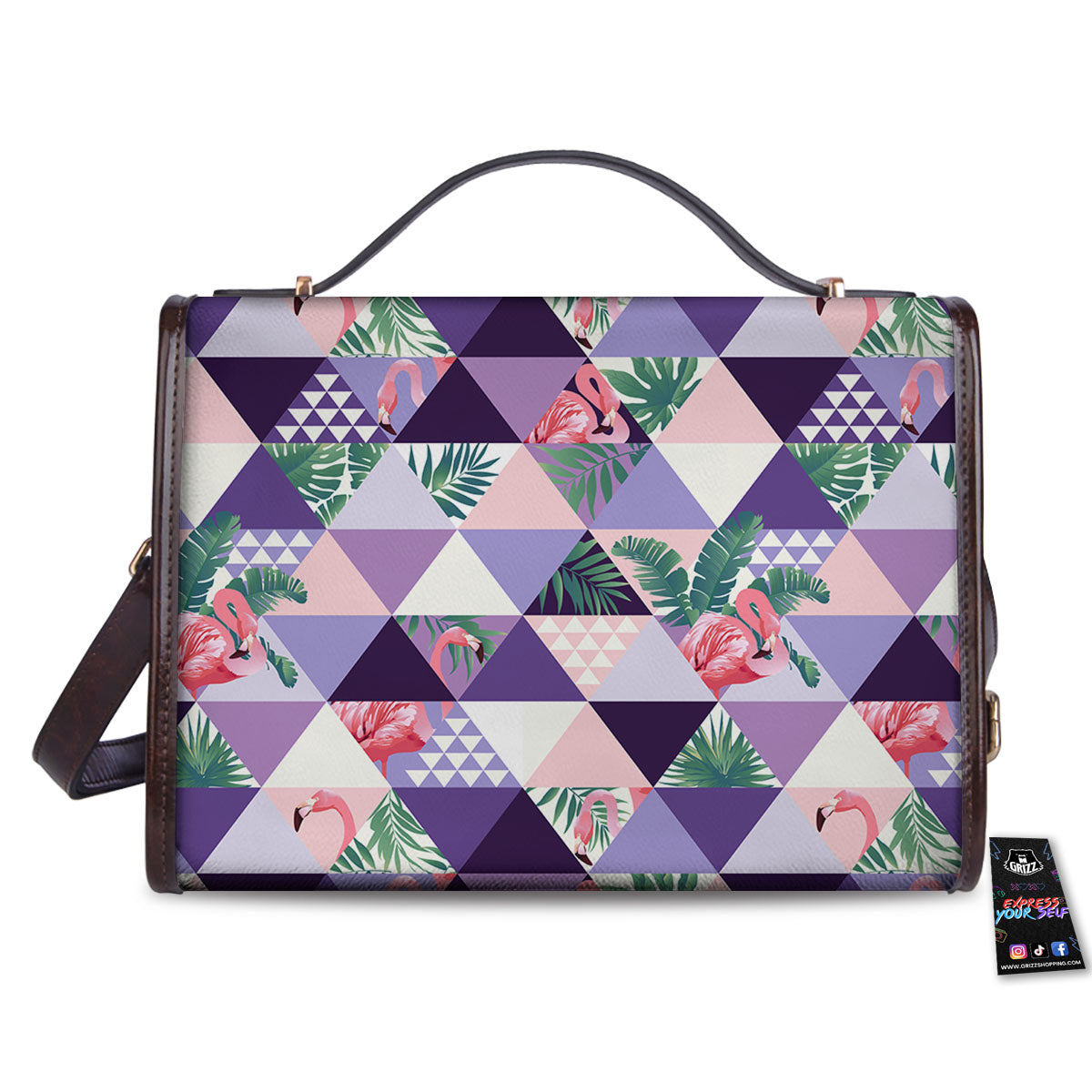 Flamingo Geometric Purple Print Pattern Women’s Satchel Bag