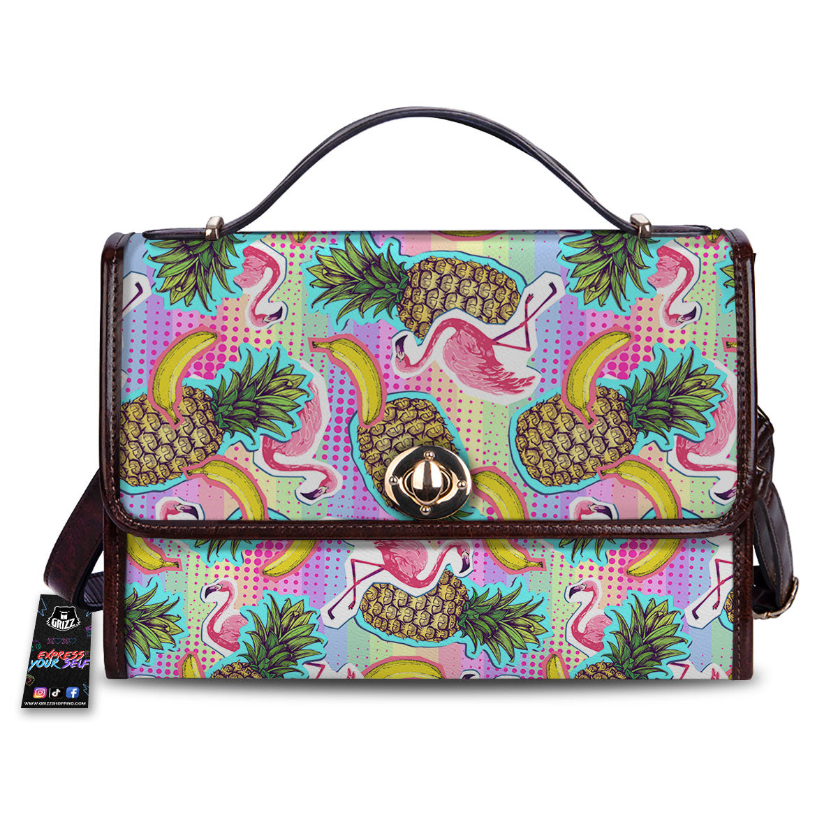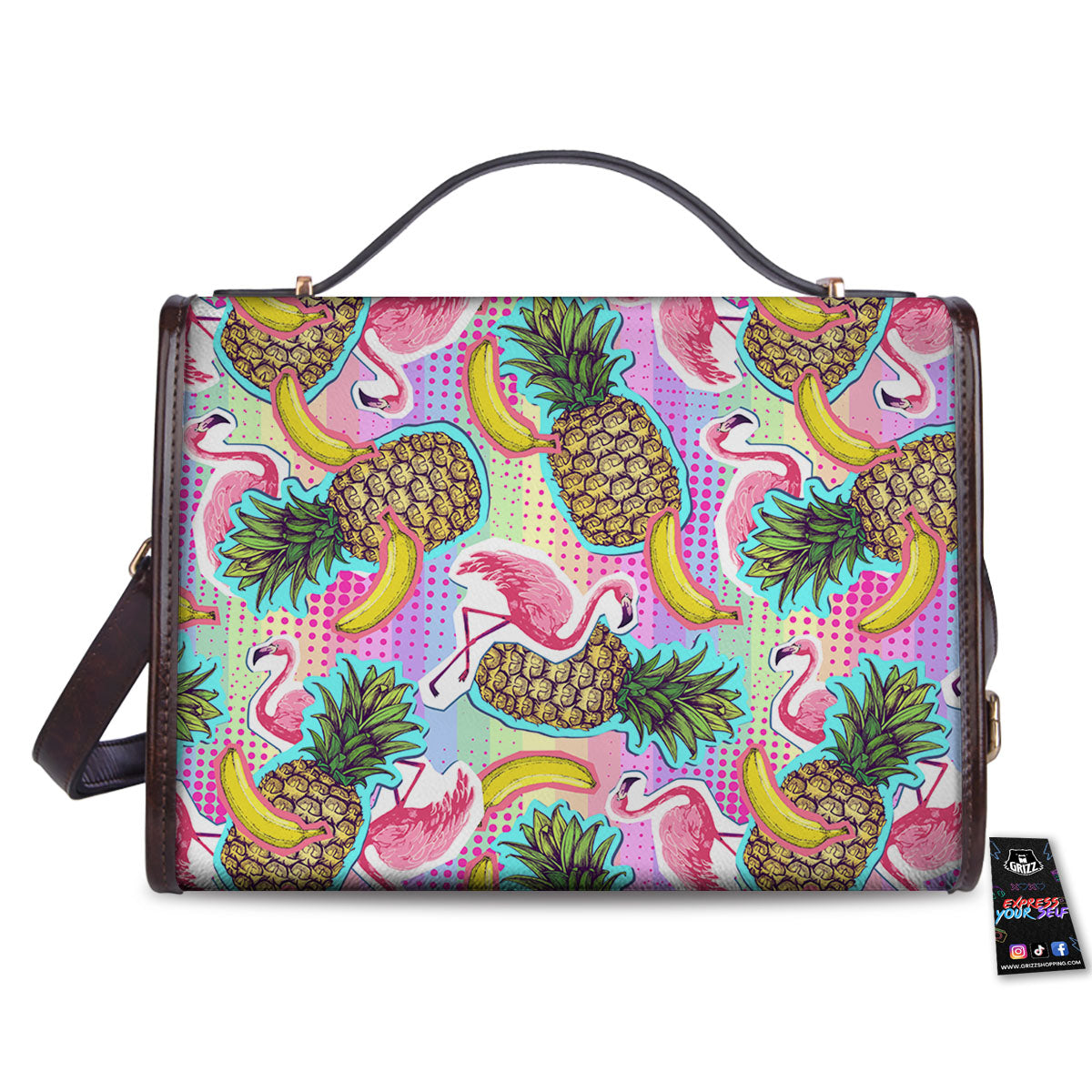 Flamingo And Pineapple Rainbow Print Pattern Women’s Satchel Bag