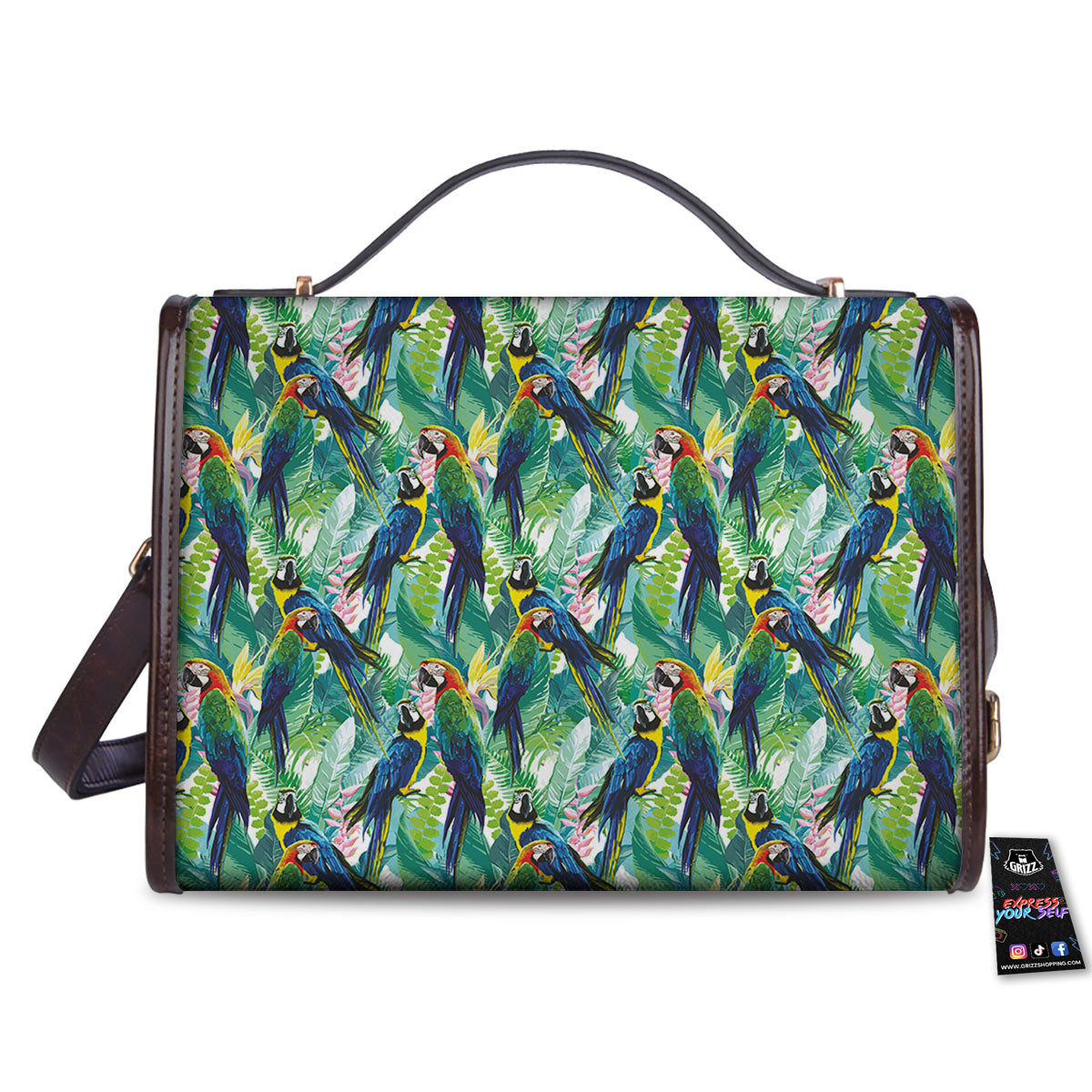 Flower And Parrot Print Pattern Women’s Satchel Bag