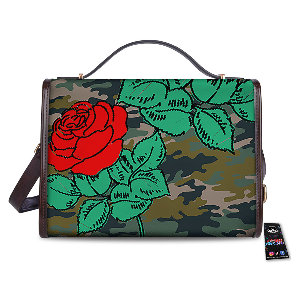 Flower Camouflage Red Rose Print Women’s Satchel Bag