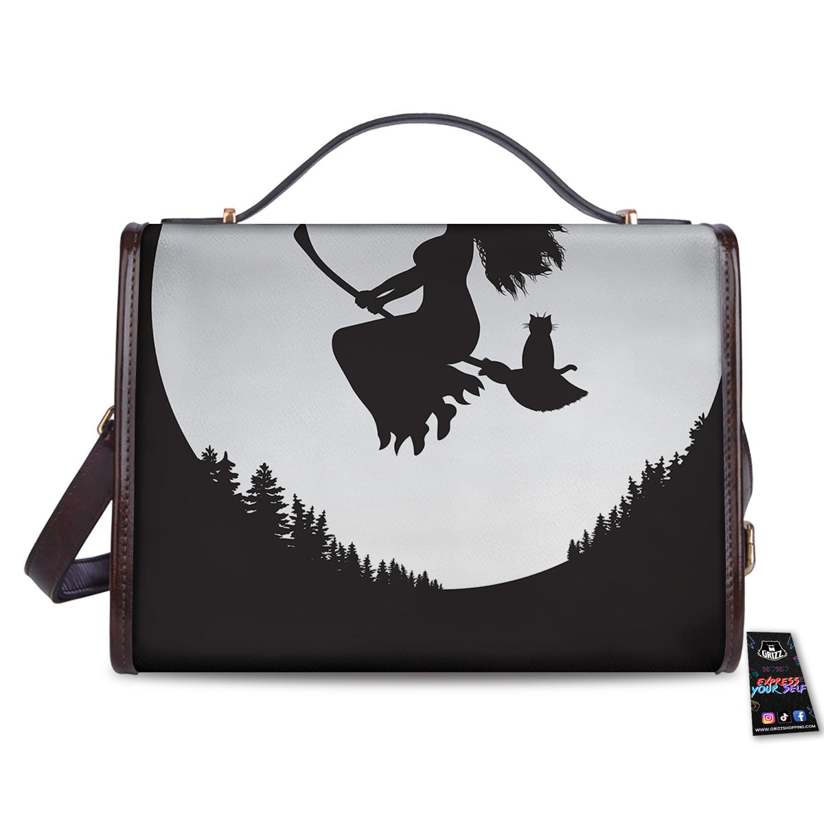 Flying Witch Cat Halloween Print Women’s Satchel Bag