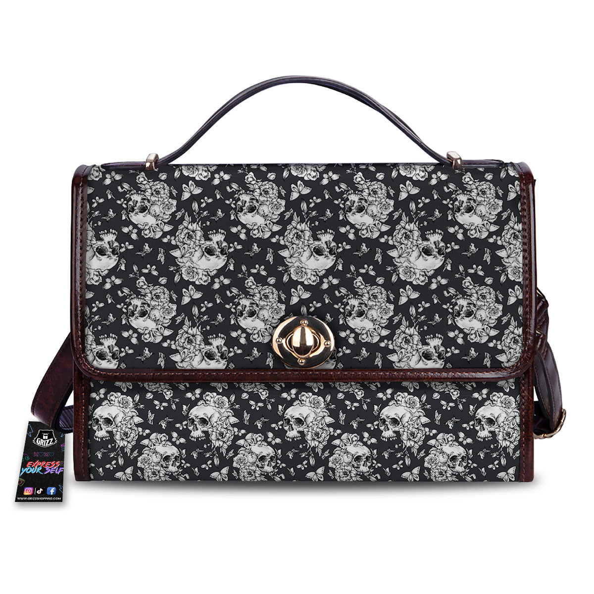 Flowers Skull Monochrome Print Pattern Women’s Satchel Bag