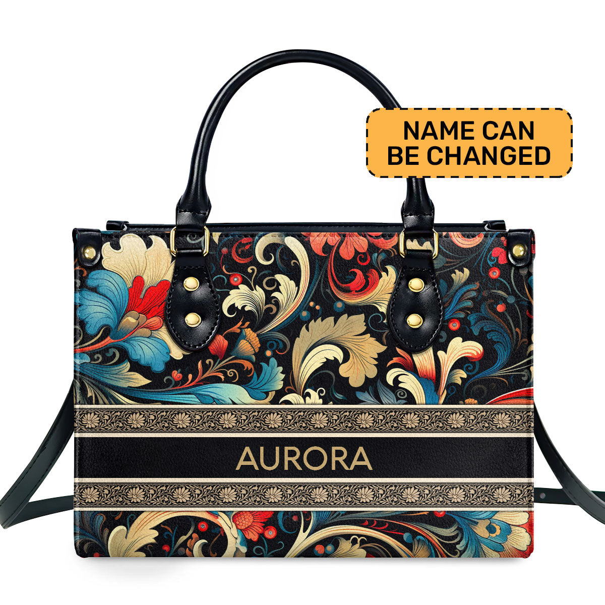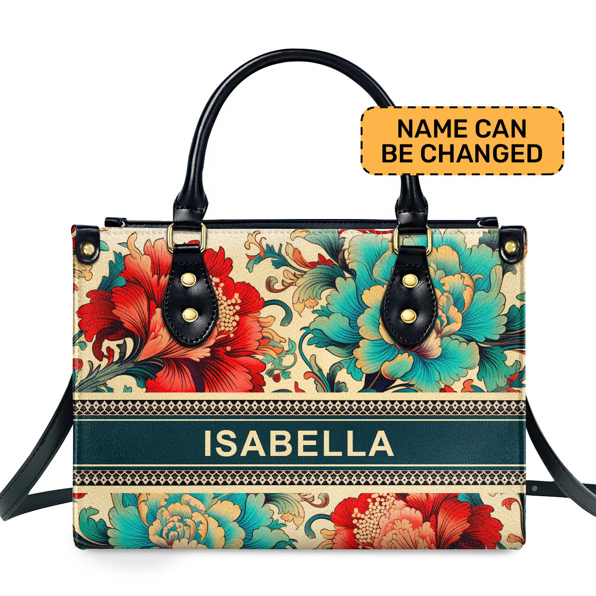 Flower Hispanic Mixed With Personalized Custom Leather Handbag
