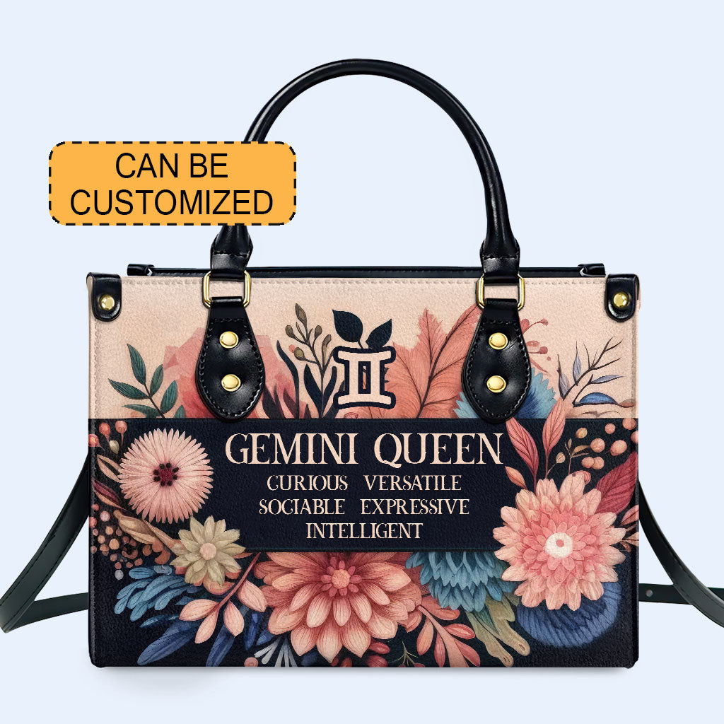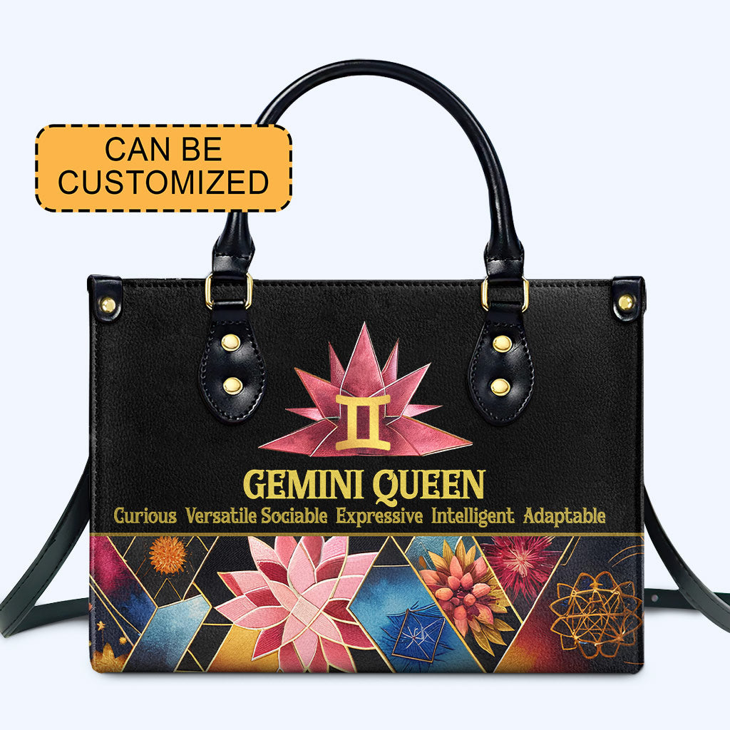 Gemini Zodiac Queen Flowers 10 Personalized Custom Leather Handbag