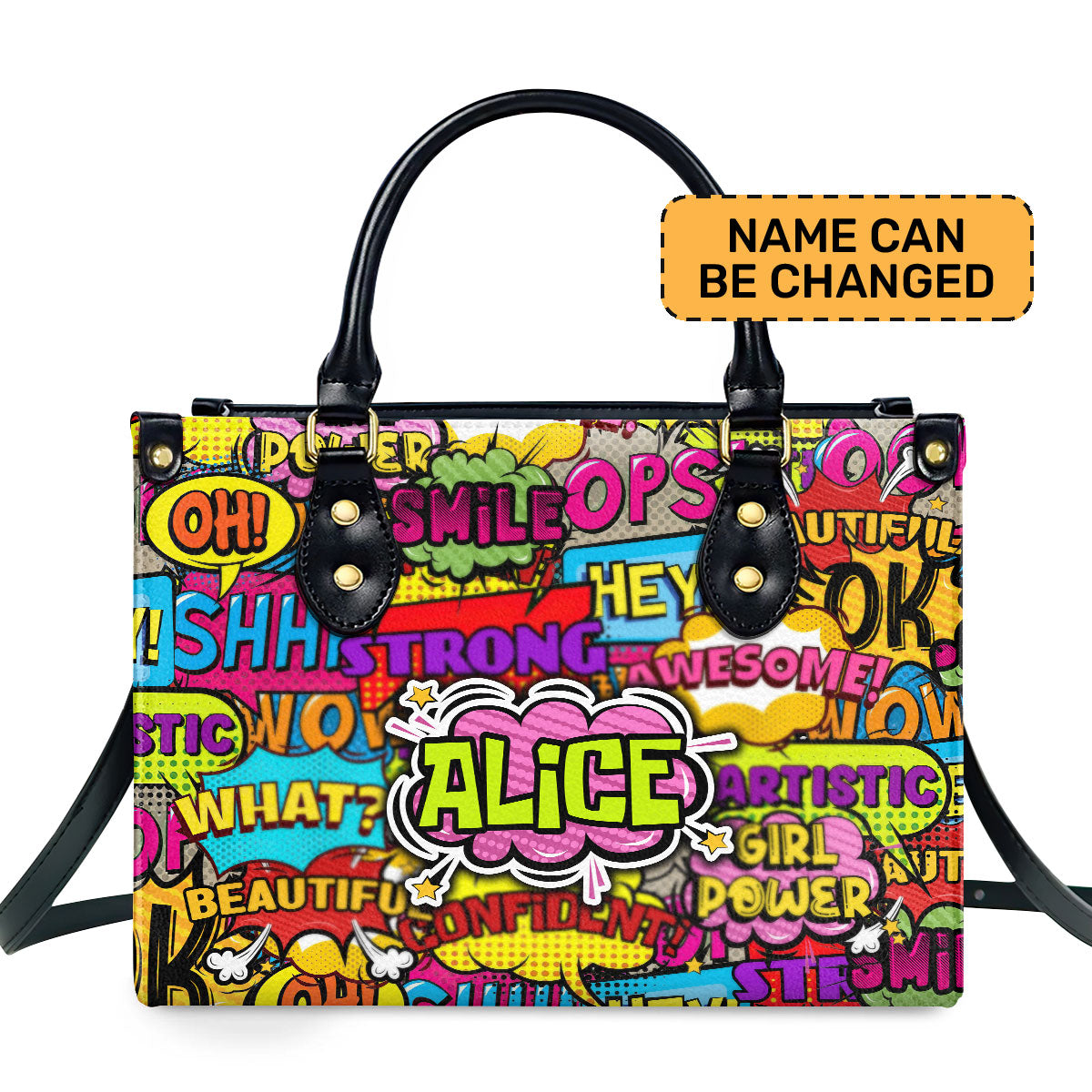 Girl Power Pop Art Style Personalized Leather Hand Bag