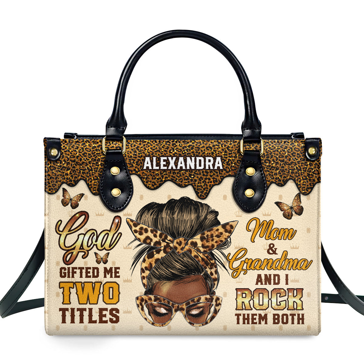 God Gifted Me Two Titles Mom And Grandma And I Rock Them Both Personalized Leather Hand Bag